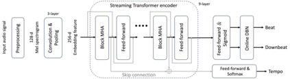 Many deep learning models have achieved dominant performance on the offline beat tracking task. However, online beat tracking, in which only the past and present input features are available, still remains challenging. In this paper, we propose BEAt tracking Streaming Transformer (BEAST), an online joint beat and downbeat tracking system based on the streaming Transformer. To deal with online scenarios, BEAST applies contextual block processing in the Transformer encoder. Moreover, we adopt relative positional encoding in the attention layer of the streaming Transformer encoder to capture relative timing position which is critically important information in music. Carrying out beat and downbeat experiments on benchmark datasets for a low latency scenario with maximum latency under 50 ms, BEAST achieves an F1-measure of 80.04% in beat and 52.73% in downbeat, which is a substantial improvement of about 5 and 13 percentage points over the state-of-the-art online beat and downbeat tracking model.