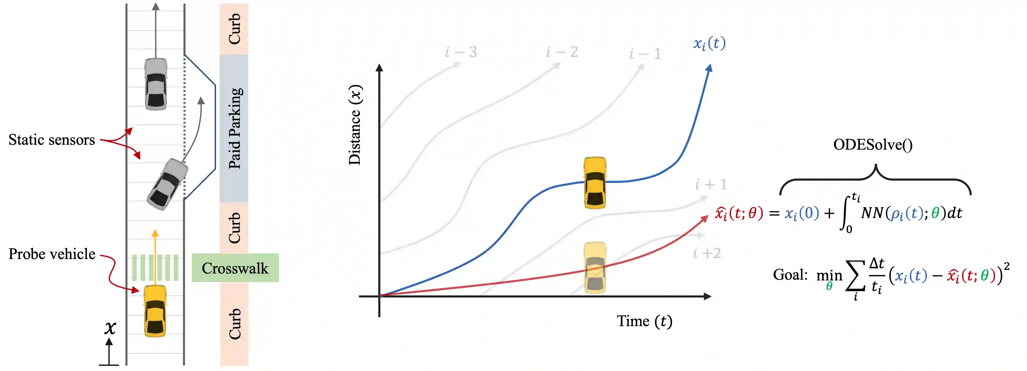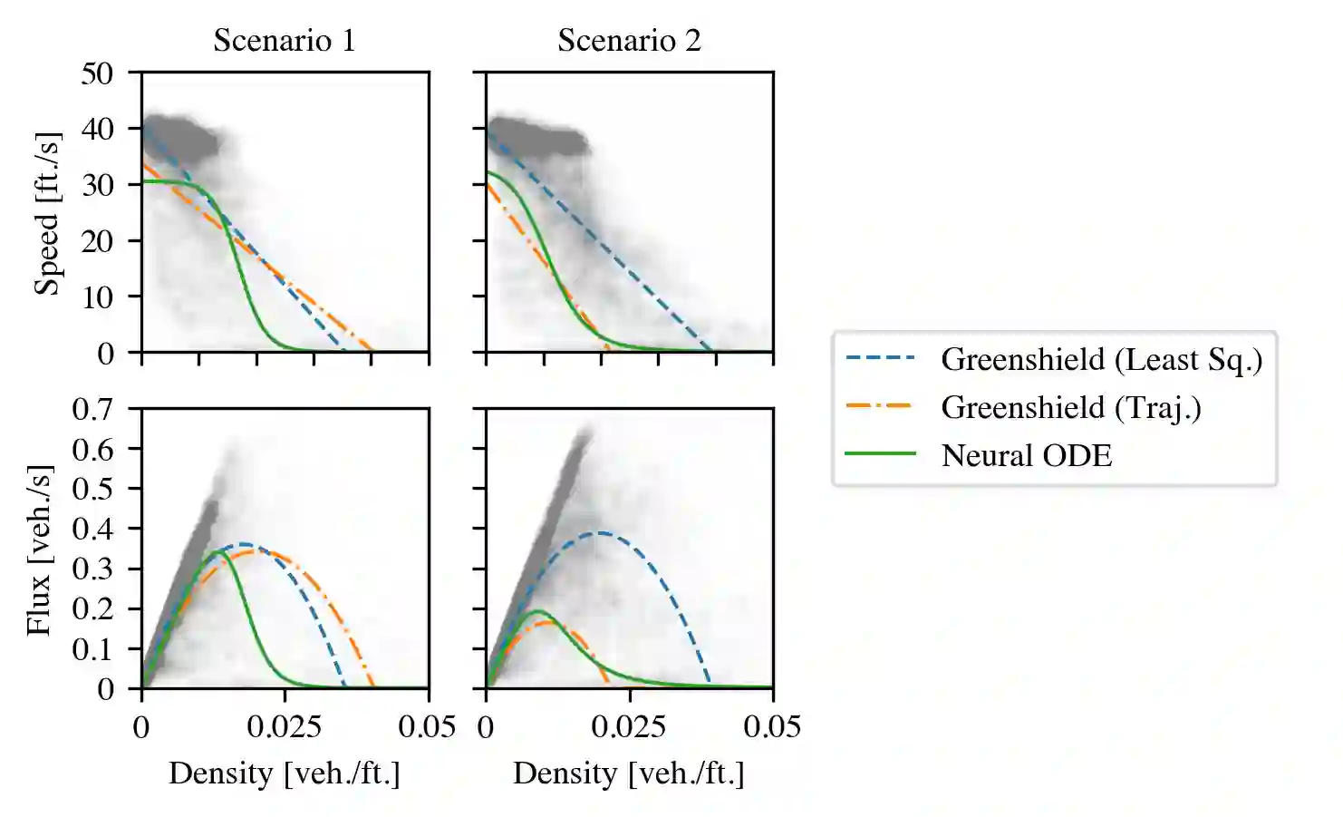 Fundamental diagrams describe the relationship between speed, flow, and density for some roadway (or set of roadway) configuration(s). These diagrams typically do not reflect, however, information on how speed-flow relationships change as a function of exogenous variables such as curb configuration, weather or other exogenous, contextual information. In this paper we present a machine learning methodology that respects known engineering constraints and physical laws of roadway flux - those that are captured in fundamental diagrams - and show how this can be used to introduce contextual information into the generation of these diagrams. The modeling task is formulated as a probe vehicle trajectory reconstruction problem with Neural Ordinary Differential Equations (Neural ODEs). With the presented methodology, we extend the fundamental diagram to non-idealized roadway segments with potentially obstructed traffic data. For simulated data, we generalize this relationship by introducing contextual information at the learning stage, i.e. vehicle composition, driver behavior, curb zoning configuration, etc, and show how the speed-flow relationship changes as a function of these exogenous factors independent of roadway design.