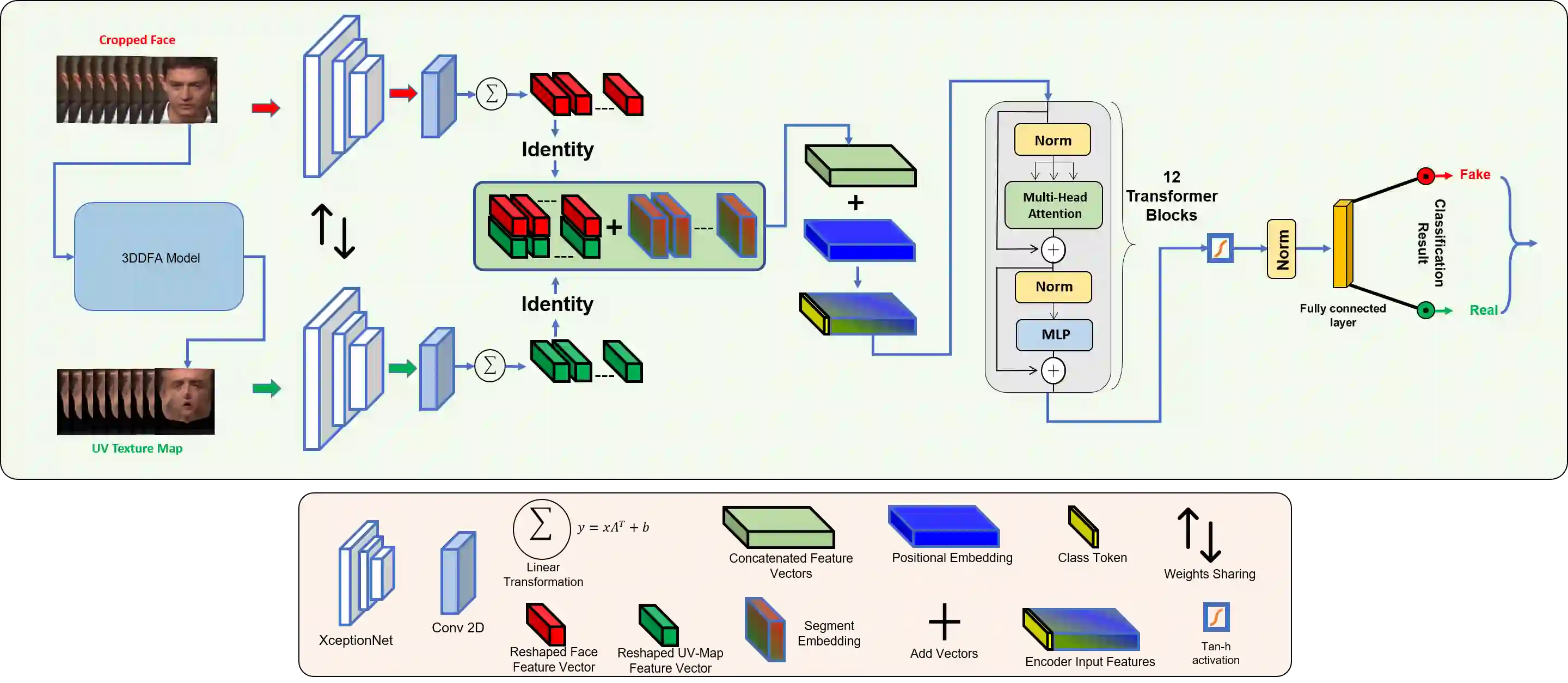 翻译:由深假伪造的脸部在互联网上广为传播,这引起了严重的社会关注。 在本文中, 我们提出一个新的视频变压器, 以渐进学习方式探测深假视频。 为了更好地对输入面图像进行匹配, 我们使用三维面部重建方法从一个输入面部图像中生成紫外线纹理。 匹配面部图像还可以提供在紫外线纹理图像中无法看到的面部、 眼睛眨眼和口部移动信息, 因此我们使用面部图像及其紫外线纹理图来提取图像特征。 我们提出了一个递增学习策略, 以微调拟议模型的少量数据, 并取得更好的深假探测性能。 对各种公共深假数据集的全面实验表明, 包含渐进学习的视频变压器模型在深假视频探测任务中取得了最新表现, 并且从序列数据中强化了特征学习。