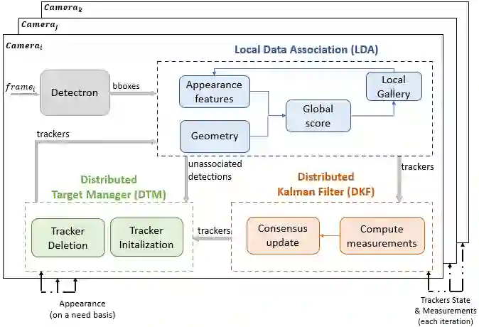翻译:最近的多目标跟踪工作大多集中在中央系统上。与此形成对照的是,本文件展示了在分布式相机网络中实施的多目标跟踪方法。分布式系统的优点在于较轻的通信管理、对故障的强大性和当地决策。另一方面,数据协会和信息融合比集中式的组合更具挑战性,这主要是因为缺少全球完整的信息。拟议的算法在重新识别网络和分布式跟踪器管理模块的支持下,促进了分布式计算机过滤器的效益,以促进一致的信息。这些技术相互补充,并以简单有效的方式促进交叉摄像头数据协会。我们用已知的公开数据集评估整个系统,在不同条件下展示了将所有模块结合起来的优势。此外,我们将我们的算法与一些现有的集中式跟踪方法进行比较,在准确性和带宽使用方面表现优于它们的行为。