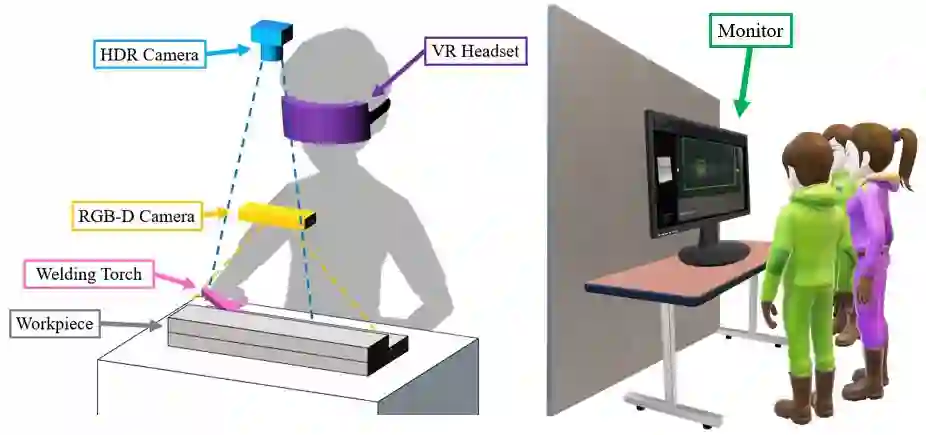 翻译:本文介绍了一个多传感器扩展的现实平台的开发,目的是改善电弧焊接任务的教学和学习经验; 获取手眼焊接协调技能的传统方法通常通过一对一的教学进行,受训人员/教练必须佩戴防护头盔,并用金属工件进行几次亲身测试; 这种方法效率低下,因为电弧发出的有害光阻碍对焊接进程的密切监测(活化者只能看到一个小亮点,而且无法看到大多数虚拟信息); 为了解决这些问题,最近的一些培训方法利用了虚拟现实(VR),作为安全模拟过程和对工作机件的几何测量方法。 然而,虚拟模拟的合成性质降低了平台的效能; 它无法包含与焊接环境的实际互动,这可能会妨碍对培训过程的学习过程。 在这个工作中,我们展示了一个新的自动化的多传感器或扩大的网络化平台,用于焊接培训。 它由三个组成部分组成:(1) IMDR相机, 显示我们真实的直观操作过程, 显示我们真实的直径的深度; 显示我们的直观操作过程; 显示我们的直观的直径; 显示的直观操作过程。