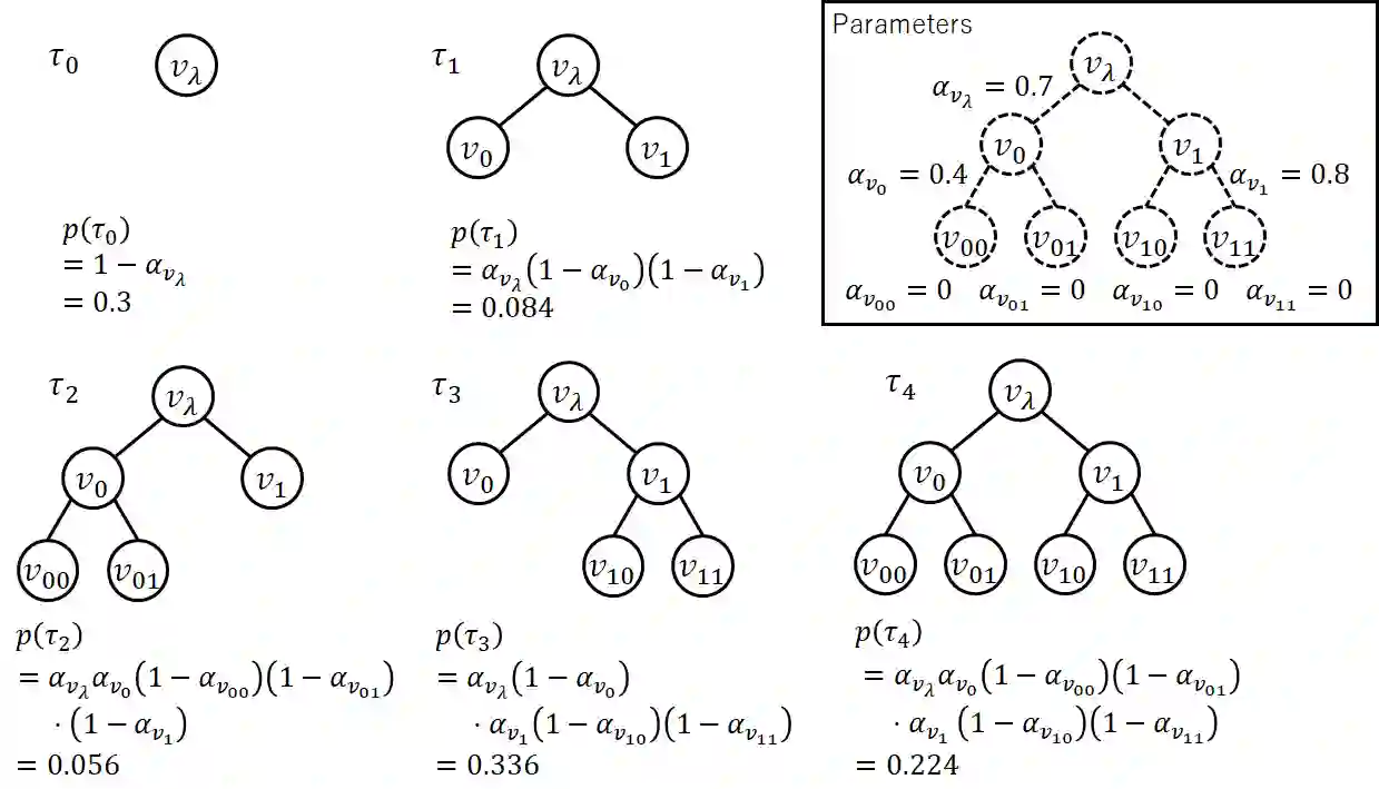 翻译:完全根植树木的递归和等级结构适用于代表数据压缩、图像处理和机器学习等各个领域的统计模型。 在多数情况下,完全根植的树不是随机的变量;因此,为了避免过大而选择模型会产生问题。 解决这个问题的方法是假定在完全根植的树木上事先分配。 这使得根据贝耶斯决定理论可以避免过度配制。 例如,通过给一个复杂模型分配一个低的先前概率, 最高后世估计器可以防止过度配制。 此外, 通过平均使用其后世加权的所有模型可以避免过度配制。 在本文中,我们提议在一组完全根植树上进行概率分布。 它的参数表示方式、 期望 和 后世分布 等循环函数, 适合于计算我们分布的属性。 虽然在以前的研究中已经提出了这种分配方法, 但是它们只适用于具体的应用。 因此, 我们提取其数学基本组成部分, 并产生新的通用方法来计算预期值、 后世分布等。