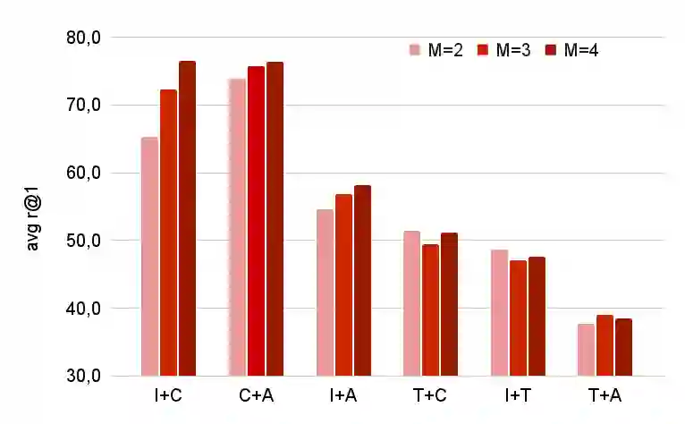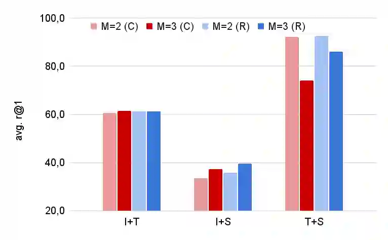 Cross-modal retrieval is the task of retrieving samples of a given modality by using queries of a different one. Due to the wide range of practical applications, the problem has been mainly focused on the vision and language case, e.g. text to image retrieval, where models like CLIP have proven effective in solving such tasks. The dominant approach to learning such coordinated representations consists of projecting them onto a common space where matching views stay close and those from non-matching pairs are pushed away from each other. Although this cross-modal coordination has been applied also to other pairwise combinations, extending it to an arbitrary number of diverse modalities is a problem that has not been fully explored in the literature. In this paper, we propose two different approaches to the problem. The first is based on an extension of the CLIP contrastive objective to an arbitrary number of input modalities, while the second departs from the contrastive formulation and tackles the coordination problem by regressing the cross-modal similarities towards a target that reflects two simple and intuitive constraints of the cross-modal retrieval task. We run experiments on two different datasets, over different combinations of input modalities and show that the approach is not only simple and effective but also allows for tackling the retrieval problem in novel ways. Besides capturing a more diverse set of pair-wise interactions, we show that we can use the learned representations to improve retrieval performance by combining the embeddings from two or more such modalities.
