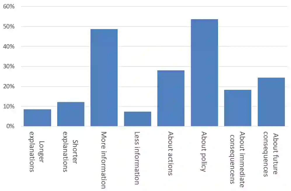 翻译:机器学习模式越来越精通复杂的任务。 但是,即使对实地专家来说,也可能很难理解模型学到了什么。这妨碍了信任和接受,也妨碍了纠正模型的可能性。因此,机器学习模式需要透明度。透明分类模式的开发引起了很大的注意,但实现透明的强化学习模式(RL)模式的发展却很少。在本研究中,我们提出了一个方法,使RL代理商能够从国家转型和结果的预期后果来解释其行为。首先,我们定义了一种国家和行动的翻译,以说明一种对人类用户来说比较容易理解的描述。第二,我们制定了一种程序,使代理商能够获得单一行动的后果,以及整个政策。这种方法计算出从用户查询得出的政策的后果和代理商的学习政策的后果。第三,设计了一种解释格式。进行了一项试点调查研究,以探讨用户对不同解释属性的偏好。结果表明,人类用户倾向于偏好对政策的解释,而不是单一行动的解释。