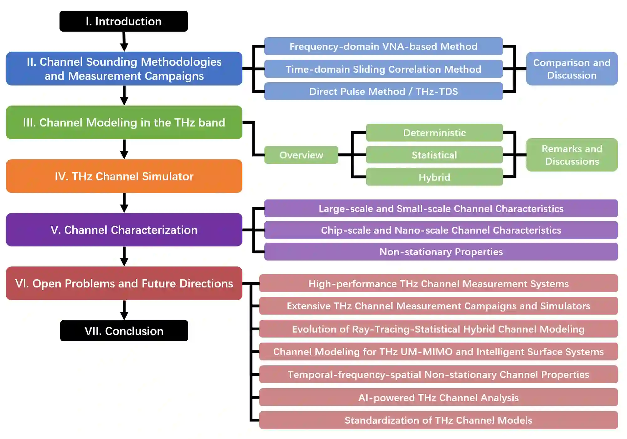 翻译:Terahertz(Thz)通信被认为是第六代(6G)无线系统的一项关键技术,对Thz无线传播基本渠道的研究为开发可靠的Thz通信系统及其应用奠定了基础,本条款全面概述了对Thz无线频道的研究。首先,三种最受欢迎的Thz频道测量方法,即基于矢量网络分析仪的频率-多域频道测量、基于滑动相关性的时空信道测量和基于时空光谱仪(THz-TDS)的Thz脉冲的时间-多域频道测量,引入和比较。最后,对现有频道测量系统和测量运动进行审查,然后将现有的频道模型方法分类为确定性、随机性和混合方法。分析了Thz频道的状态模型,并采用了基于这些模型的频道模拟器。接着,介绍了对Thz频带的频道特征的深入审查。最后,为6G无线频道研究提出了公开的问题和未来研究方向。