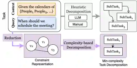 Large Language Models (LLMs) suffer from reliability issues on complex tasks, as existing decomposition methods are heuristic and rely on agent or manual decomposition. This work introduces a novel, systematic decomposition framework that we call Analysis of CONstraint-Induced Complexity (ACONIC), which models the task as a constraint problem and leveraging formal complexity measures to guide decomposition. On combinatorial (SATBench) and LLM database querying tasks (Spider), we find that by decomposing the tasks following the measure of complexity, agent can perform considerably better (10-40 percentage point).