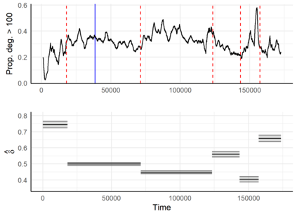 翻译:生成时间网络模型在分析复杂网络的依赖结构和演变模式方面发挥着重要作用。由于实际网络数据的复杂性,假设基础数据生成机制本身随时间变化不定,这种观察导致研究演变网络分布结构的变化点或突变。在本文中,我们提出一种基于可能性的方法,以检测无方向的优惠附加网络的变化点,并建立一个假想测试框架,以探测单一变化点,同时对变化点进行一致的估测。然后,该方法通过滑动窗口法和计算效率更高的分数统计将扩展至多个变化点设置。我们还将拟议方法与先前开发的通过模拟对变化点进行非参数估计的方法进行比较,而本文中制定的方法将用来模拟某个主题在Twitter网络中的受欢迎程度。