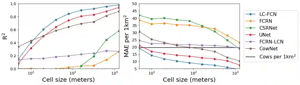 翻译:在非常高分辨率的卫星图像中定位和计数大型蚂蚁 -- -- 如牛和 ⁇ 等哺乳动物 -- -- 是支持生态研究的一项重要任务。先前的工作表明,采用深层学习方法和次米多光谱卫星图像,这样做是可行的。我们通过提出基线方法CowNet,扩大这一工作线,同时估计图像中的动物数量(计数),并预测其位置的像素水平(本地化)。我们还提议了一种方法,用以评价在考虑生态监测任务利益攸关方所需信息的不确切性的大场景中计数和本地化任务模型。最后,我们把基线方法的基准与场景天体计数艺术视觉方法的状态作为基准。我们特别测试由此得出的模型在CA.A.C.C.C.F.C.CN模型在莱耶斯海滨的大型景观上的时间分布。我们发现,LC-FCN模型在0.56和0.61和平均回顾0.78和0.92之间,平均回顾在3个试验场外。