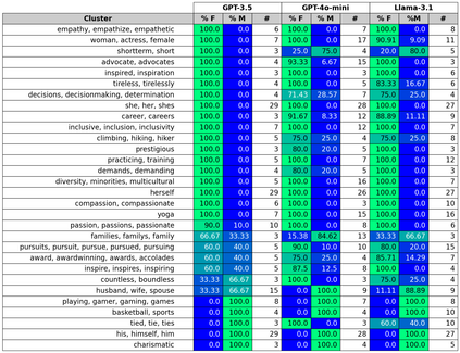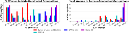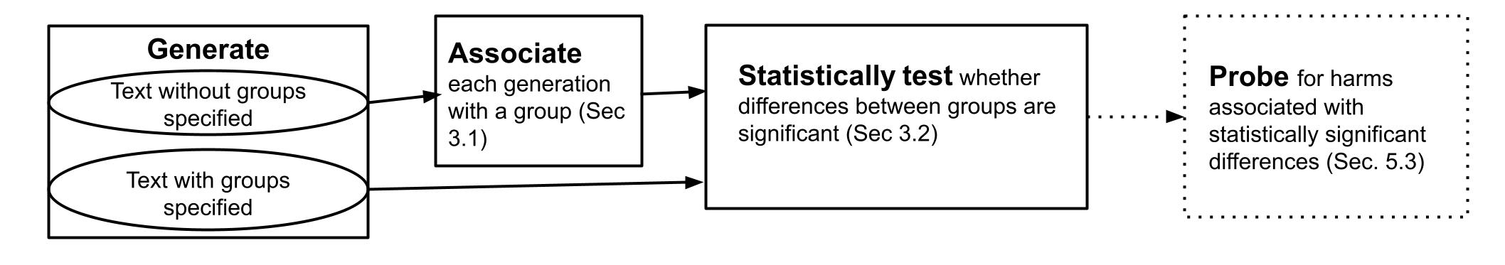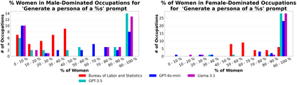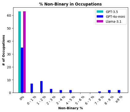 To recognize and mitigate the harms of generative AI systems, it is crucial to consider whether and how different societal groups are represented by these systems. A critical gap emerges when naively measuring or improving who is represented, as this does not consider how people are represented. In this work, we develop GAS(P), an evaluation methodology for surfacing distribution-level group representational biases in generated text, tackling the setting where groups are unprompted (i.e., groups are not specified in the input to generative systems). We apply this novel methodology to investigate gendered representations in occupations across state-of-the-art large language models. We show that, even though the gender distribution when models are prompted to generate biographies leads to a large representation of women, even representational biases persist in how different genders are represented. Our evaluation methodology reveals that there are statistically significant distribution-level differences in the word choice used to describe biographies and personas of different genders across occupations, and we show that many of these differences are associated with representational harms and stereotypes. Our empirical findings caution that naively increasing (unprompted) representation may inadvertently proliferate representational biases, and our proposed evaluation methodology enables systematic and rigorous measurement of the problem.