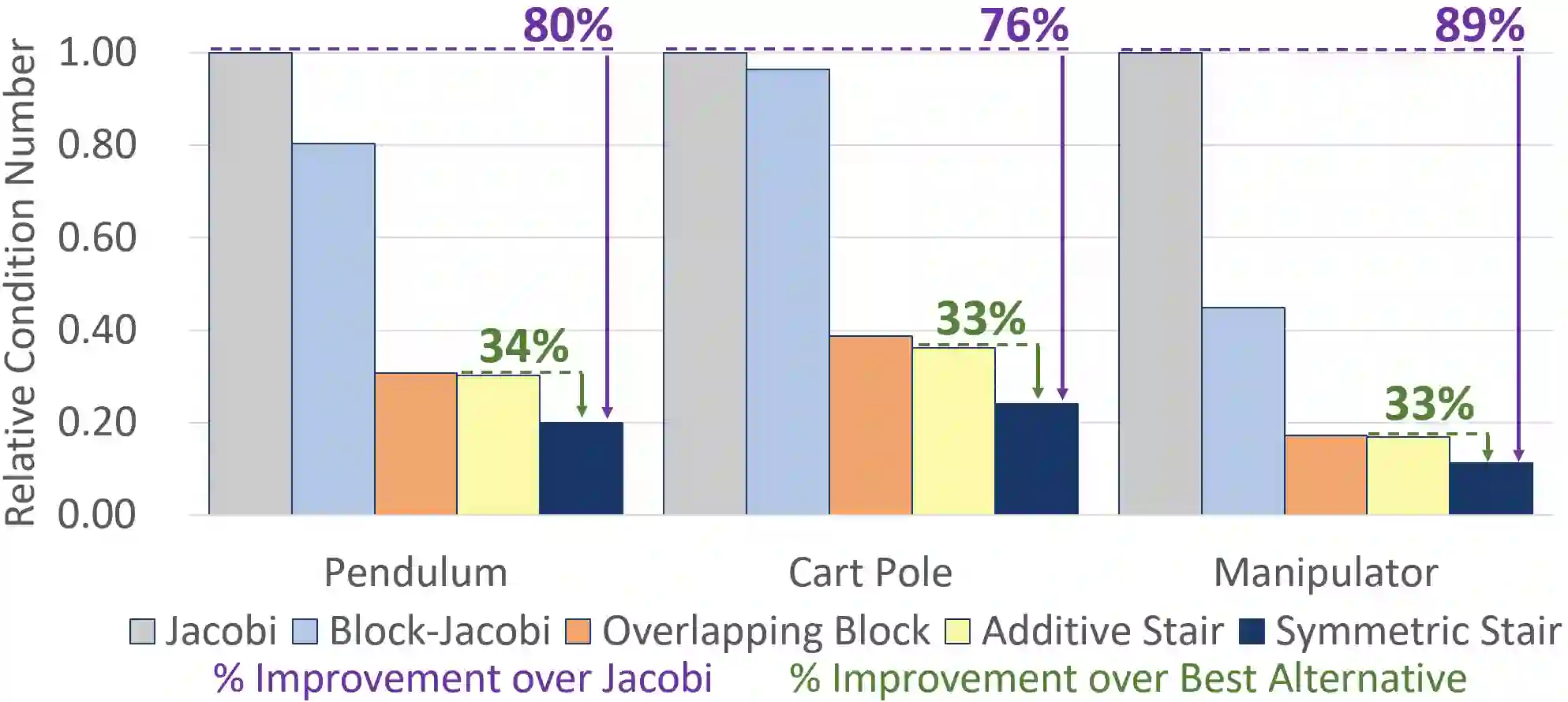 There has been a growing interest in parallel strategies for solving trajectory optimization problems. One key step in many algorithmic approaches to trajectory optimization is the solution of moderately-large and sparse linear systems. Iterative methods are particularly well-suited for parallel solves of such systems. However, fast and stable convergence of iterative methods is reliant on the application of a high-quality preconditioner that reduces the spread and increase the clustering of the eigenvalues of the target matrix. To improve the performance of these approaches, we present a new parallel-friendly symmetric stair preconditioner. We prove that our preconditioner has advantageous theoretical properties when used in conjunction with iterative methods for trajectory optimization such as a more clustered eigenvalue spectrum. Numerical experiments with typical trajectory optimization problems reveal that as compared to the best alternative parallel preconditioner from the literature, our symmetric stair preconditioner provides up to a 34% reduction in condition number and up to a 25% reduction in the number of resulting linear system solver iterations.