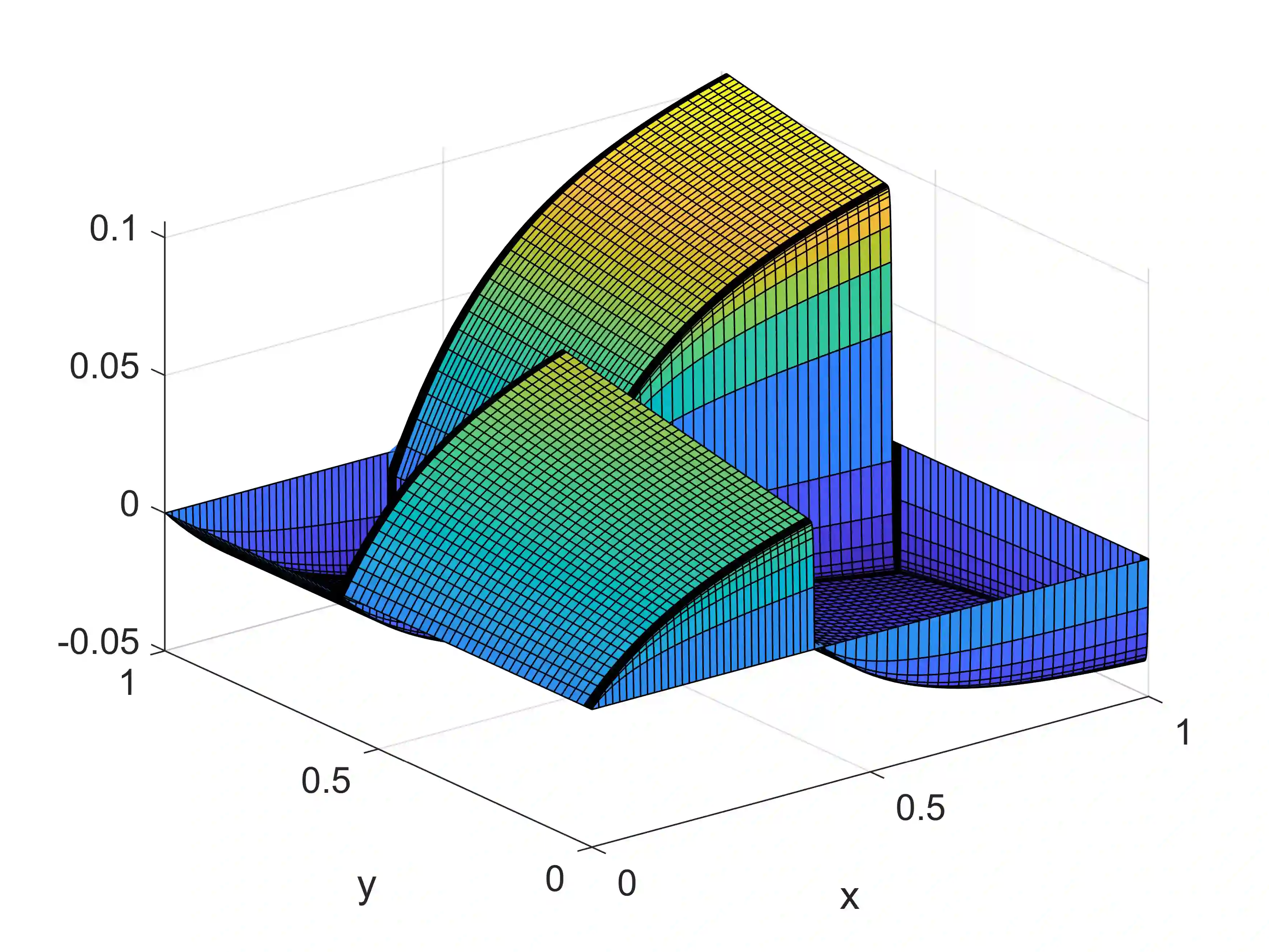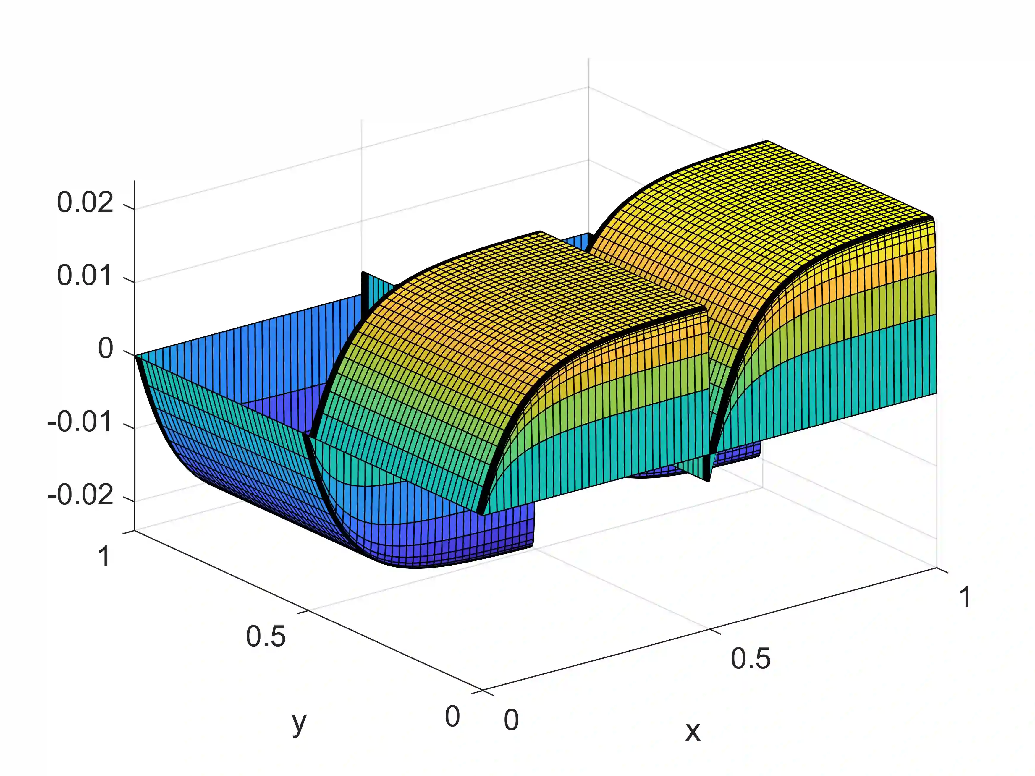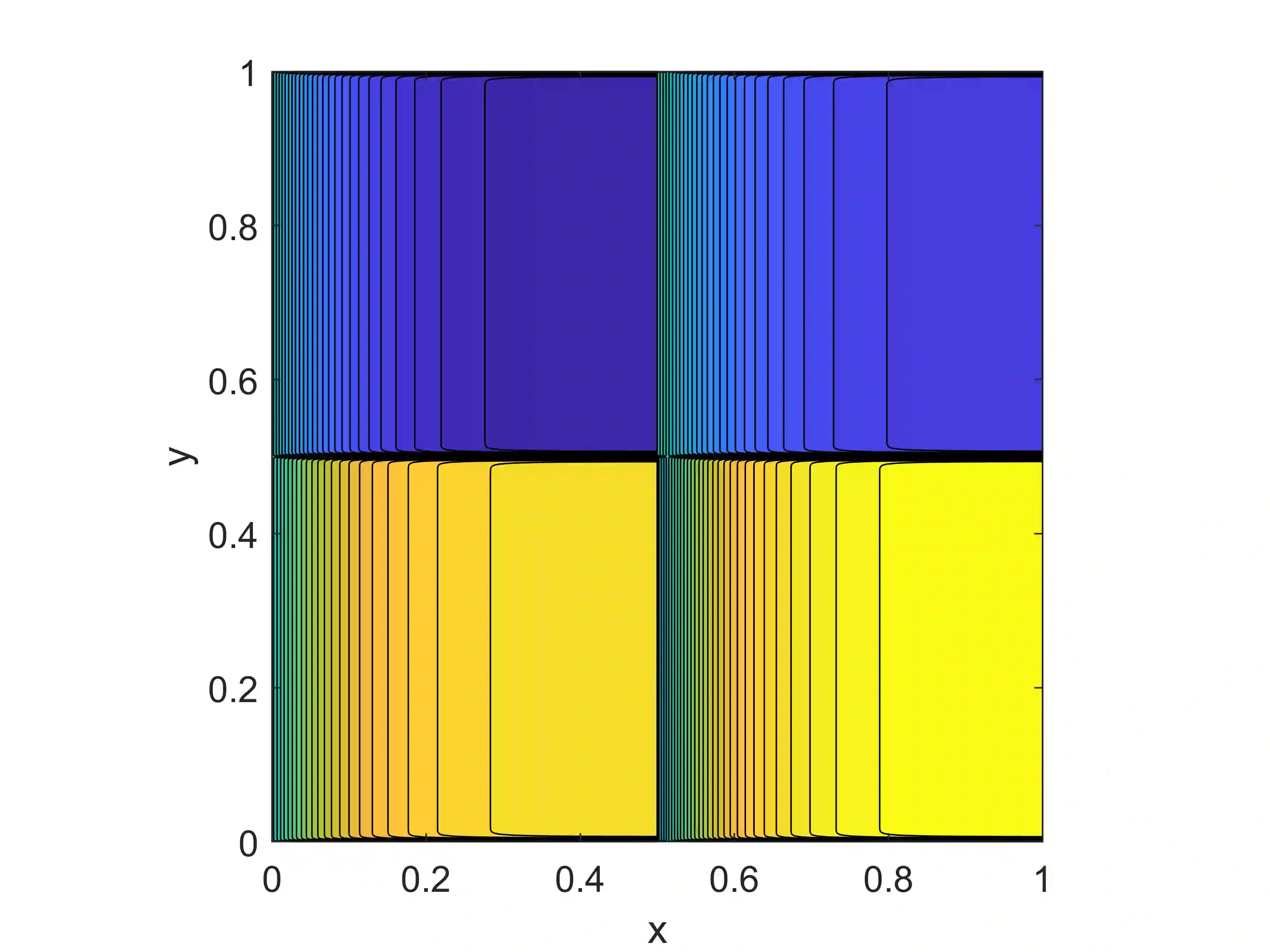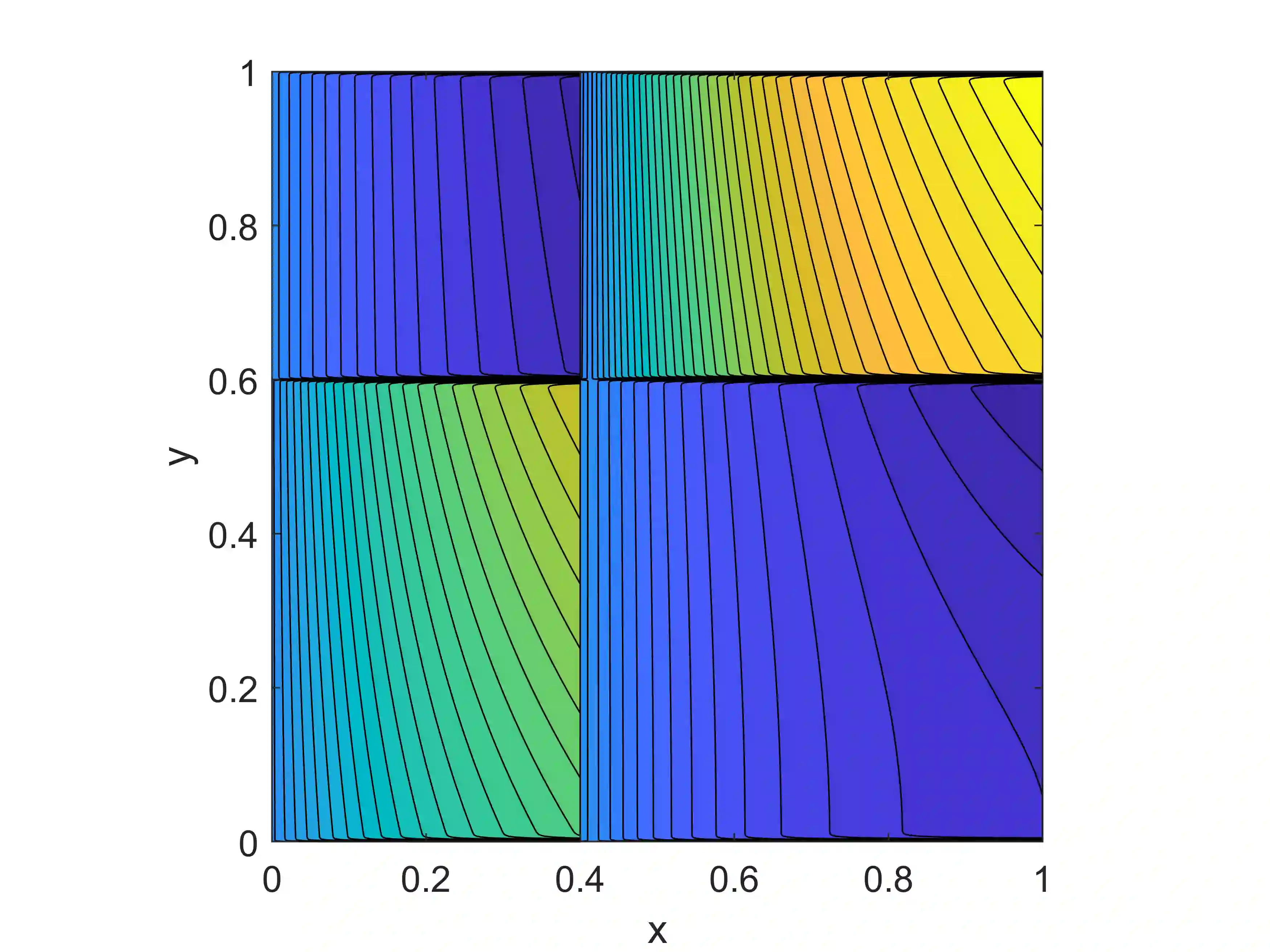 We propose a finite difference scheme for the numerical solution of a two-dimensional singularly perturbed convection-diffusion partial differential equation whose solution features interacting boundary and interior layers, the latter due to discontinuities in source term. The problem is posed on the unit square. The second derivative is multiplied by a singular perturbation parameter, $\epsilon$, while the nature of the first derivative term is such that flow is aligned with a boundary. These two facts mean that solutions tend to exhibit layers of both exponential and characteristic type. We solve the problem using a finite difference method, specially adapted to the discontinuities, and applied on a piecewise-uniform (Shishkin). We prove that that the computed solution converges to the true one at a rate that is independent of the perturbation parameter, and is nearly first-order. We present numerical results that verify that these results are sharp.