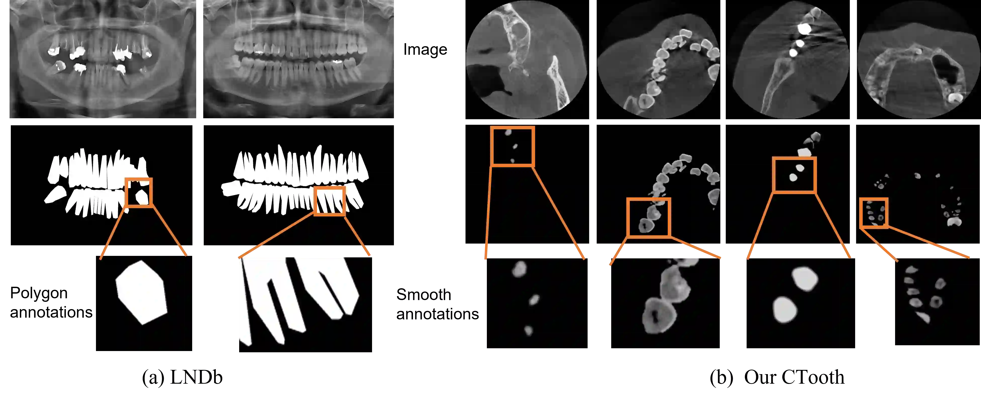 翻译:3D牙分解是计算机辅助牙科诊断和治疗的一个先决条件。 但是, 对所有牙区进行人工分解是主观和耗时的。 最近, 深学习分解方法产生令人信服的结果, 并减少人工注解的努力, 但需要大量的实地真相来进行培训。 据我们所知, 3D分解研究的牙齿数据很少。 本文中, 我们建立一个带有牙金标准的完全注解的锥形针形计算透析数据集CTooth。 这个数据集包含22卷( 7363片), 并配有有经验的放射翻译加注的优美牙标签。 为确保相对均衡的数据抽样分布, 数据差异包含在Ctooth中, 包括缺失的牙齿和牙科修复。 对这一数据集进行了一些最先进的分解方法。 之后, 我们进一步总结并应用一系列基于3D的内径的内径图变异变量来进行分解。 这项工作为牙齿分解任务提供了一个新的基准。 实验证据证明, 3DUT结构对牙区进行精度分析, 3UNet结构的反推导反应模块, 在牙区进行相对来说, 78 Dnet 模 模型中, 也抑制了Slax