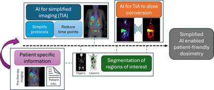 KEY WORDS: Artificial Intelligence (AI), Theranostics, Dosimetry, Radiopharmaceutical Therapy (RPT), Patient-friendly dosimetry KEY POINTS - The rapid evolution of radiopharmaceutical therapy (RPT) highlights the growing need for personalized and patient-centered dosimetry. - Artificial Intelligence (AI) offers solutions to the key limitations in current dosimetry calculations. - The main advances on AI for simplified dosimetry toward patient-friendly RPT are reviewed. - Future directions on the role of AI in RPT dosimetry are discussed.
