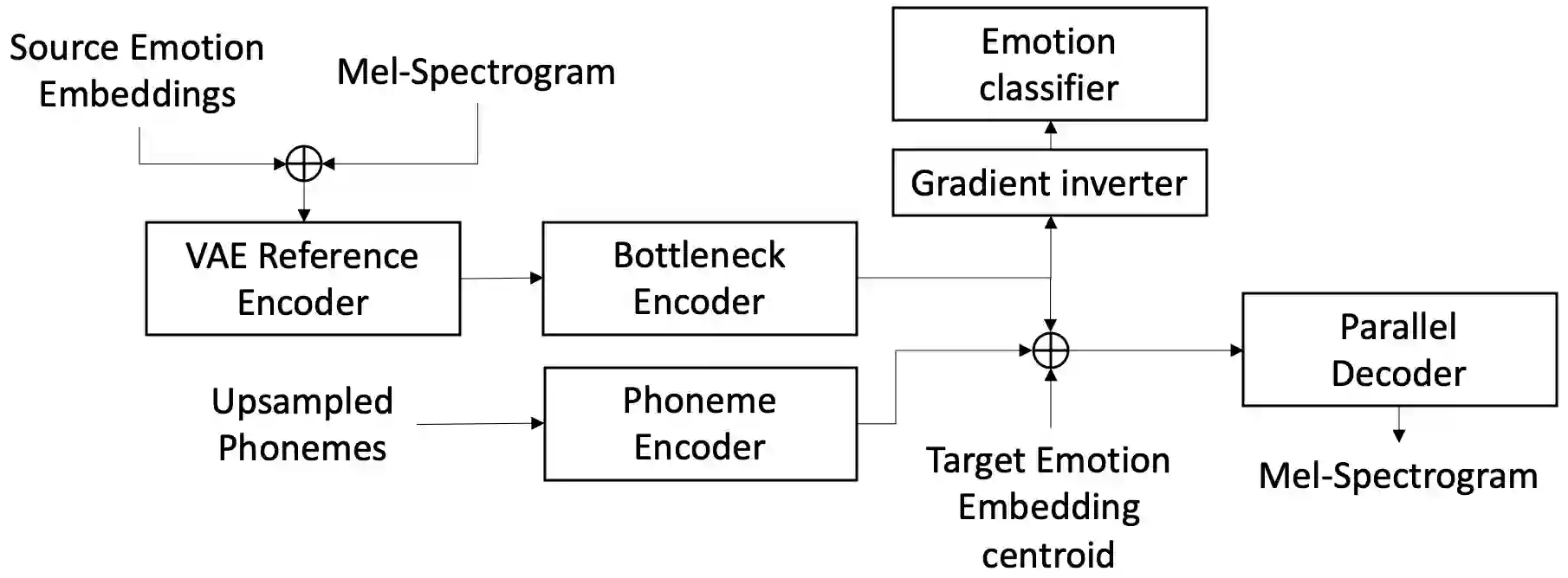 翻译:情感声音转换模型在不改变语言身份或语言内容的情况下适应言语中的情感。 它们比文本到语音模型更缺乏数据, 并且能够为下游任务生成大量情感数据 。 在此工作中, 我们提议 EmoCat, 这是一种语言不可知的情感声音转换模型 。 它通过利用大量美国英语情感数据, 实现了德国语情感转换质量不小于45分钟的德国语情感转换 。 EmoCat 是一种基于复制器( CopyCat ) 的编码解密模型。 我们使用对抗性培训将情感从编码器中渗漏到解密器中。 我们使用对抗性培训将情感泄漏到解密器中。 对抗性培训通过对梯度转换到真正反向梯度的新贡献而得到改进 。 这只能消除泄漏的信息, 并且通过更高的转换性能而更佳的调调。 评估显示, Emocat 可以转换成不同的情感, 但与录音相比, 特别是非常直观的情绪变异。 EmoCat 能够实现方的音质量, 5个测试的录音记录。