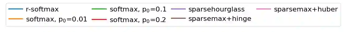 翻译:现在在许多领域中,人工神经网络模型取得了显著的成果。函数映射模型提供的表示到概率分布是深度学习解决方案的不可分割的方面。虽然softmax是机器学习界通常接受的概率映射函数,但它无法返回稀疏的输出,总是将正的概率分布到所有位置。在本文中,我们提出了r-softmax,一种修改的softmax,它输出稀疏的概率分布,具有可控的稀疏率。与现有的稀疏概率映射函数不同,我们提供了一种直观的机制来控制输出的稀疏程度。我们在多标签数据集上展示,r-softmax胜过了其他softmax的稀疏替代品,并且在与原始softmax的比较中表现出高度的竞争力。我们还将r-softmax应用于预训练的transformer语言模型的自我注意模块,并证明它在不同的自然语言处理任务的微调中导致了性能的提高。