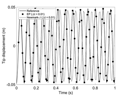 We propose a computationally efficient and systematically convergent approach for elastodynamics simulations. We recast the second-order dynamical equation of elastodynamics into an equivalent first-order system of coupled equations, so as to express the solution in the form of a Magnus expansion. With any spatial discretization, it entails computing the exponential of a matrix acting upon a vector. We employ an adaptive Krylov subspace approach to inexpensively and and accurately evaluate the action of the exponential matrix on a vector. In particular, we use an apriori error estimate to predict the optimal Kyrlov subspace size required for each time-step size. We show that the Magnus expansion truncated after its first term provides quadratic and superquadratic convergence in the time-step for nonlinear and linear elastodynamics, respectively. We demonstrate the accuracy and efficiency of the proposed method for one linear (linear cantilever beam) and three nonlinear (nonlinear cantilever beam, soft tissue elastomer, and hyperelastic rubber) benchmark systems. For a desired accuracy in energy, displacement, and velocity, our method allows for $10-100\times$ larger time-steps than conventional time-marching schemes such as Newmark-$\beta$ method. Computationally, it translates to a $\sim$$1000\times$ and $\sim$$10-100\times$ speed-up over conventional time-marching schemes for linear and nonlinear elastodynamics, respectively.