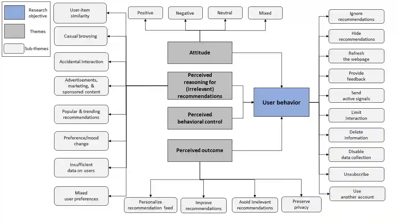 翻译:推荐人系统已成为现代网络应用程序的无处不在的一部分。 它们帮助用户发现新的相关项目。 今天的用户通过多年与这些系统的互动,已经对推荐人系统如何运作、目标是什么、用户如何操纵这些系统有了内在的理解。 我们把这个理解描述为建议人的理论。 在这项研究中,我们与40个推荐人系统用户进行了半结构性的访谈,以从经验上探索影响用户行为的有关因素。 我们基于对所收集数据的严格专题分析得出的调查结果表明,用户对推荐人系统的行为有着直观和精密的理解。 我们还发现,用户根据其理解、态度和意图改变了他们的互动,以唤起他们想要的推荐人行为。 最后,我们讨论了此类用户行为对推荐人行为的潜在影响。