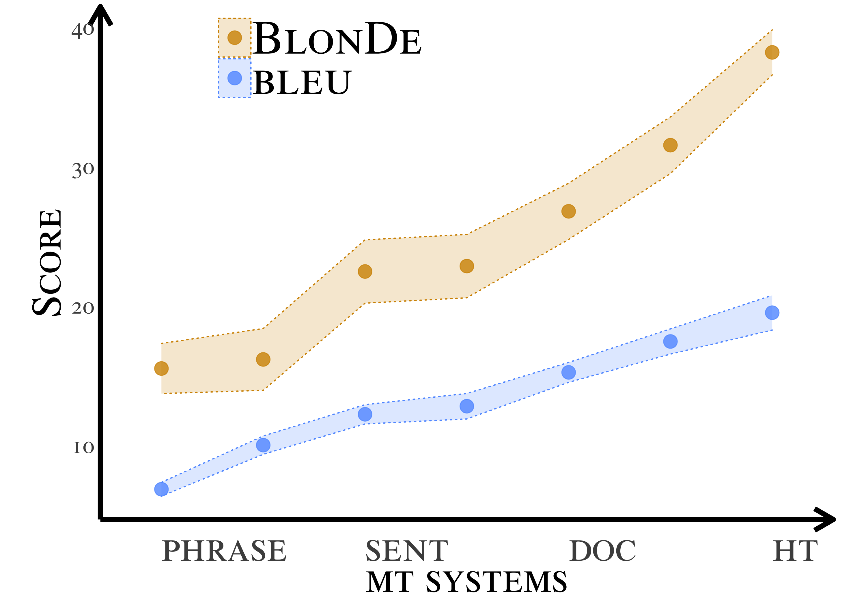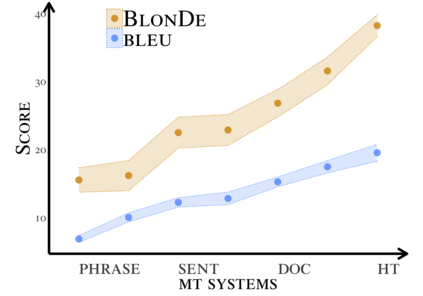 翻译:标准自动衡量标准,如BLEU,对于文件一级的MT评估来说是不可靠的,它们既不能区分翻译质量的文件水平改进与判决水平的改善,也不能辨别导致背景不可知翻译的谈话现象。本文介绍了一个新的自动衡量标准Blonde,以扩大自动MT评价的范围,从判决到文件水平。Blonde通过对讨论的跨度进行分类和计算分类的基于相似的F1尺度来考虑讨论的一致性。我们对新建的数据集BWB进行广泛的比较。实验结果显示,BlonD在文件水平上具有更好的选择性和可解释性,而且对文件水平的细微之处更为敏感。在一项大规模的人类研究中,BlonD还实现了与人类判断的比以往指标高得多的关系。