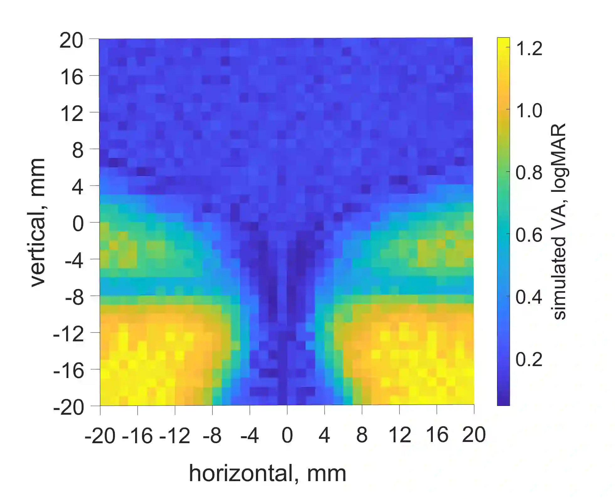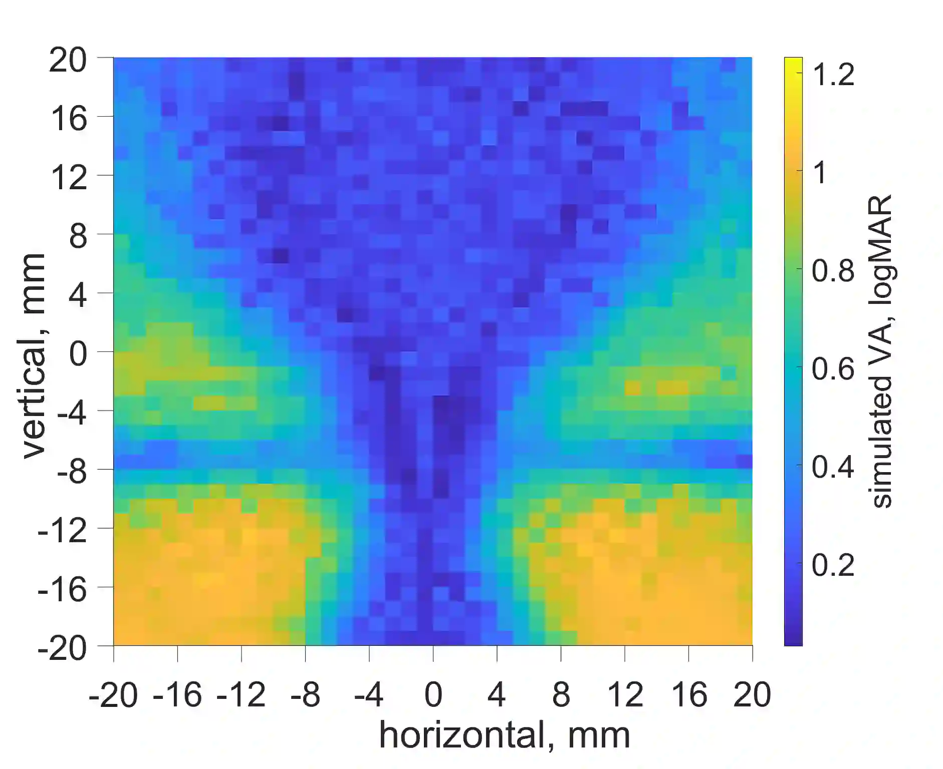 翻译:目的:本研究的目的是提出一个框架,用以根据一个神经神经变异网络(CNN)预测直观度(VA),并进一步比较PAL设计。方法:一个简单的两个隐藏层CNN接受了培训,通过将CNN的特征提取能力与心理物理楼梯方法相结合,将Ladolt Cs的偏差方向分类。模拟的结果是,从39个主观模拟的眼部(+/-1.5D,步数大小:0.5D)对VA临床VA的可预测性进行了预测。随后,一个通过普通直观硬体或软PAL设计来纠正了预视眼眼的模拟(VA+/1.5D,步数大小:0.5DD)。一个模拟模型显示,VA类前视眼变的直观眼镜已经通过普通直观或软PAL设计(2.5D)进行了校正。 Vland-Al-Alman的临床分析表明,对-LA类的精确度和正值的精确性能进行了限制(+/1.96SD),对VAL的精确度和正态变异性分析显示,对VAL的模拟区域进行了更接近性变异性反应,对结果进行了模拟。