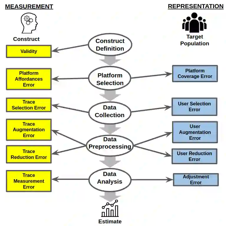 翻译:作为在线数字线索记录的人的活动和意见,特别是在社交媒体和其他网络平台上,在网上记录的数字痕迹上,人们的活动和观点提供了越来越多的公众信息图片,他们承诺允许在记录这些痕迹的平台用户之外对人口进行推断,这代表了社会科学的真正潜力,是对调查研究的补充。但数字痕迹的使用给研究企业带来了自己的复杂性和新的错误来源。最近,研究人员开始讨论数字痕迹用于了解人类和社会现象时可能发生的错误。这一文章综合了这一讨论,并提出了一种系统的方法,根据为调查方法开发的总调查错误框架,对潜在错误进行分类。我们引入了一个概念框架,用于诊断、理解和记录根据这些数字痕迹进行的研究可能发生的错误。虽然数字痕迹的使用与TSE框架中众所周知的错误来源有明显的相似之处,但新的“网上平台上人类行为数字痕迹总错误框架”(TED-On) 确定了数种错误,具体针对数字痕迹的使用。通过提供标准词汇来描述这些错误,而拟议的社会研究框架旨在说明这些错误的先进性研究。