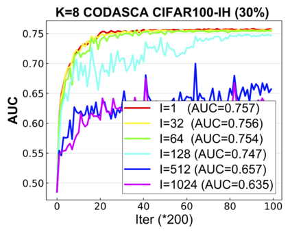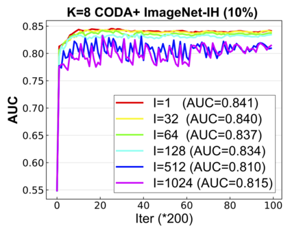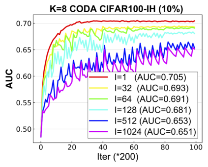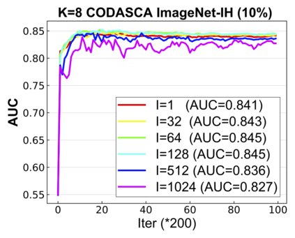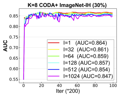 翻译:深AUC(ROC曲线下的区域) 最大化(DAM) 因其极有可能造成数据分类不平衡,最近引起了人们的极大关注。然而,关于Federal Deep AUC 最大化(FDAM)的研究仍然有限。与侧重于可分解的最小化目标的标准联合学习(FL)方法相比,FDM由于其最小化目标而变得更加复杂,与个别例子相比,它的最小化目标是不可分的。在本文中,我们建议改进FDAM的变量,通过以分布式方式解决流行的非Convex 强凝固的DAM 最小成型。DAM的配置也可以适用于非cive Comepal CAUC(FAUC 强凝固硬化硬化硬化软缩缩缩缩缩缩微缩图 ) 。与本文的一个惊人的结果是,拟议的计算法的通信复杂性与机器数量无关,也与准确性水平无关。我们FDAMMLA-LIRC数据库在基准数据集和不同组织的医学X光图像上的效率。我们的实验显示,ALIRC-RO-IA-C ASUM的成绩测试方法用于测试多种医院的数据。AUD-ILILUDA-C。AD-ILM的测试方法可以改进了A-I-IB-ID-ILUD-IB-IAS-I-C在A-IAS-IAS-IAS-IAS-IAS-IAS-IAS-I-C。