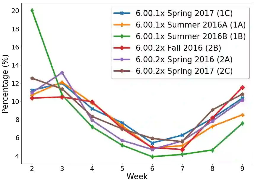 翻译:在大规模开放在线课程(MOOC)中,学生行为的预测模型可以支持学习的多个方面,包括教员反馈和及时干预。当学生结果尚不清楚时,持续课程必须依靠以前提供的课程的历史数据所培训的模式。可以转让模型,但它们的预测性能往往很差。一个原因是这两个课程的预测性特征不能充分代表共同的预测性特征。我们提出了一个自动传输转移学习方法来解决这个问题。它依靠的是MOOC点击流数据的随机化问题认知性组织,每个学生在多个课程中都表示一组具体的MOOC事件类型。它由两种基于与自动编译器的代言学习的替代转移方法组成:一种被动式方法,使用转导式主构件分析,以及一种使用相关校准损失术语的积极方法。我们用这些方法来调查类似和不相近的MOOC的辍学预测的可转移性,并与已知方法进行比较。结果显示模型可改进的可转移性,并表明这些方法能够自动学习体现MOOC的共同预测性特征的特征。