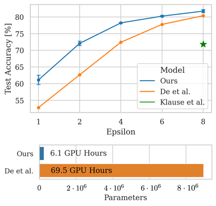 翻译:“差异隐私”(DP)提供的正式隐私保障使敏感信息从深层学习模式中渗漏出来,但在实践中,这造成了严重的计算和准确性成本;最近建立的最先进的(SOTA)在DP下导致图像分类的原因是使用重数据扩增和大批量尺寸,导致计算间接费用急剧增加;在这项工作中,我们建议采用效率更高的模型,提高特征质量,为DP培训引入可控的等同相动网络;我们证明,我们的模型能够在不同的美元价值中超过目前在CIFAR-10上的SOTA业绩9美元,同时将模型参数数量减少35美元,将计算时间减少90美元以上;我们的成果是朝着高效模型结构迈出的一大步,这些模型能够最佳地利用参数,缩小私人和非私人深层学习用于计算机视觉的私利利用差距。