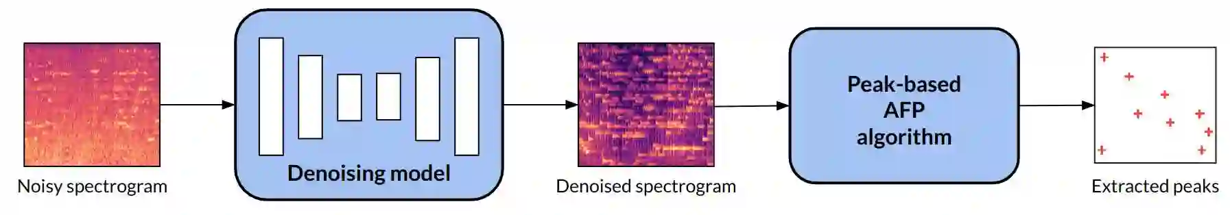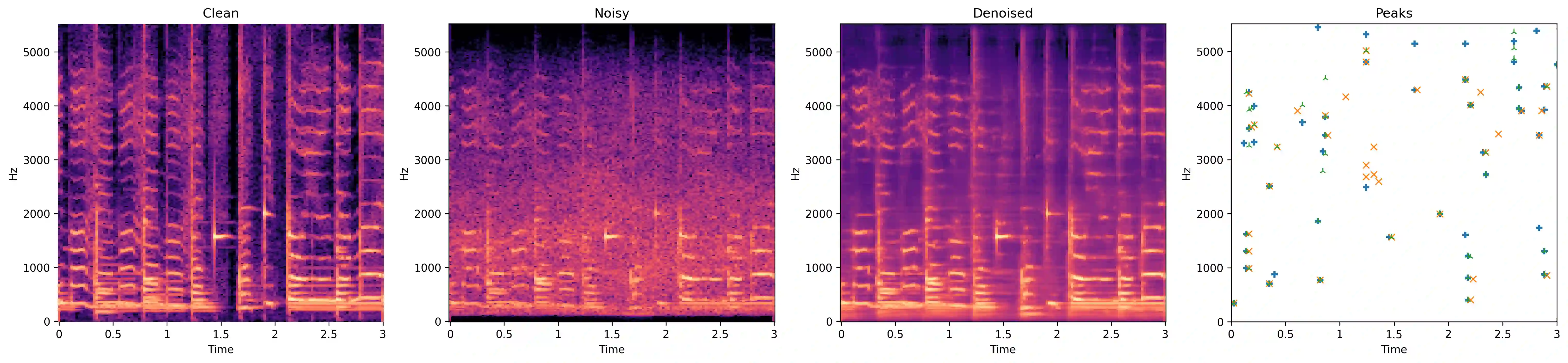 Audio fingerprinting is a well-established solution for song identification from short recording excerpts. Popular methods rely on the extraction of sparse representations, generally spectral peaks, and have proven to be accurate, fast, and scalable to large collections. However, real-world applications of audio identification often happen in noisy environments, which can cause these systems to fail. In this work, we tackle this problem by introducing and releasing a new audio augmentation pipeline that adds noise to music snippets in a realistic way, by stochastically mimicking real-world scenarios. We then propose and release a deep learning model that removes noisy components from spectrograms in order to improve peak-based fingerprinting systems' accuracy. We show that the addition of our model improves the identification performance of commonly used audio fingerprinting systems, even under noisy conditions.
