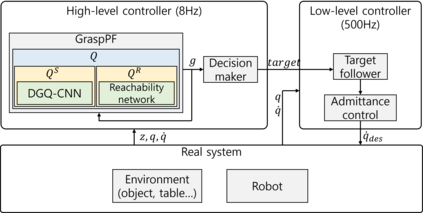 翻译:虽然在通过数据驱动的方法掌握信息的任务中,封闭环路反馈和预测6度自由(DoF)捕捉而不是传统使用的4DoF自上而下地捕捉被证明可以提高个人性能,但很少有两种系统。此外,这项任务的顺序属性很少处理,而接近运动必然会产生一系列观测结果。因此,本文件综合了三种方法,并提出了一个封闭环框架,从不断收到的视觉观测中可以在一个极为模糊的环境中预测6DoF捕捉。这可以通过将捕捉问题作为隐藏Markov模型,并应用粒子过滤器来加以实现。此外,我们引入了一种新的轻量级神经网络(CNN)模型,实时评估和初始采集样本,使粒子过滤过程成为可能。实验是在一个真实的机器人上进行的,其环境极为混乱,实验表明我们的框架不仅在数量上大大改进了与基线算法相比的成功率,而且还在质量上对环境的动态变化作出反应,并清理了表。