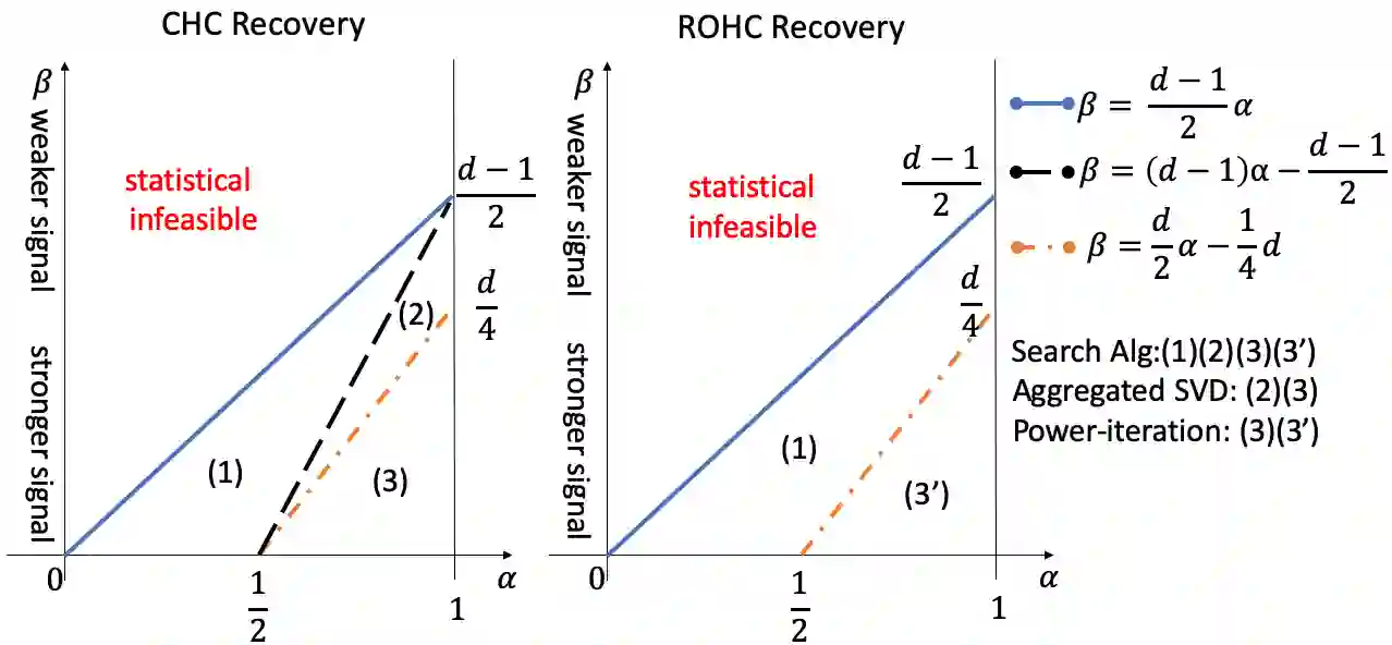 翻译:本文研究种植结构的高阶集群的统计和计算限制。 我们侧重于两个组群模型, 恒定的高阶集群和一级高阶集群(ROHC), 并研究测试集群是否存在的方法和理论(检测)和确定集集(回收)的支持。 具体地说, 我们提出了CHC和ROHC在统计上可以检测/ 回收的信号到噪音比率的精确度比界限。 我们还开发了紧凑的计算门槛: 当信号到噪音比率低于这些阈值时, 我们证明, 在高阶集聚中, 多式时段算法无法解决这些问题。 在高成像刻板(HHPC)的计算硬性猜想下, 检测和高成型种植密度子子(HPDDS) 回收。 我们还提出了当信号到噪声比率比率高于这些阈值时, 双轨和高压结构结构导致计算障碍。 在高压组合中, 高成交点的多时, 高序的计算方法, 以及我们统计结构中, 最高级的精确的计算方法 。