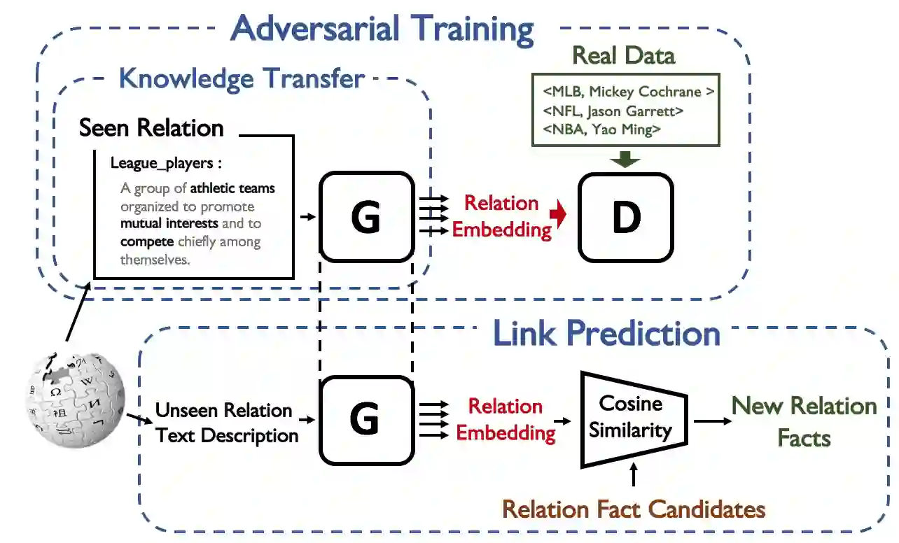 翻译:大型知识图表(KGs)在当前信息系统中显得更加重要。为了扩大KGs的覆盖范围,以往关于知识图表完成情况的研究需要收集对新增加关系的适当培训实例。在本文中,我们考虑一种新颖的提法,即零点学习,以解脱这种繁琐的整理。对于新增加的关系,我们试图从它们的文字描述中学习它们的语义特征,从而承认不可见关系的事实,而没有看到任何实例。为此,我们利用Genemental 反versarial网络(GANs)在文本和知识图表域间建立联系:生成者学会仅仅用噪音的文字描述来生成合理的关系嵌入。在此背景下,零点学习自然转化为传统监管的分类任务。有规律地说,我们的方法是模型-认知性,有可能适用于任何版本的KG嵌入,并持续提高NELL和Wiki数据集的性能。
