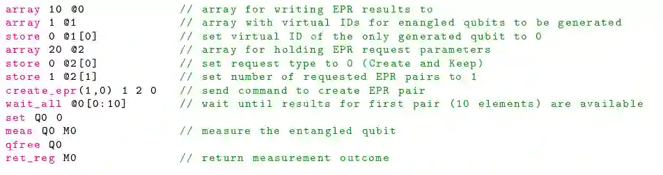 翻译:我们引入了用于量子互联网应用的低层次指令架构 NetQASM 。 NetQASM 是一个通用、 平台独立和可扩展的指令, 支持本地量子门、 强大的经典逻辑和远程缠绕生成的量子网络操作 。 此外, NetQASM 允许将应用层的经典逻辑和通信与物理层的量子操作紧密结合起来 。 我们用一系列工具实施 NetQASM, 用于在网上写入、 粗化、 编码和运行 NetQASM 代码 。 我们的工具包括一个在Python 的更高层次的 SDK, 它为量子互联网的编程应用程序提供了方便的方法 。 我们的SDK 也可以在国内使用我们现有的量子模拟器、 NetSquid 和 SimulaQron, 并且还将在Quantum网络探索器的未来循环中提供硬件的公共界面 。