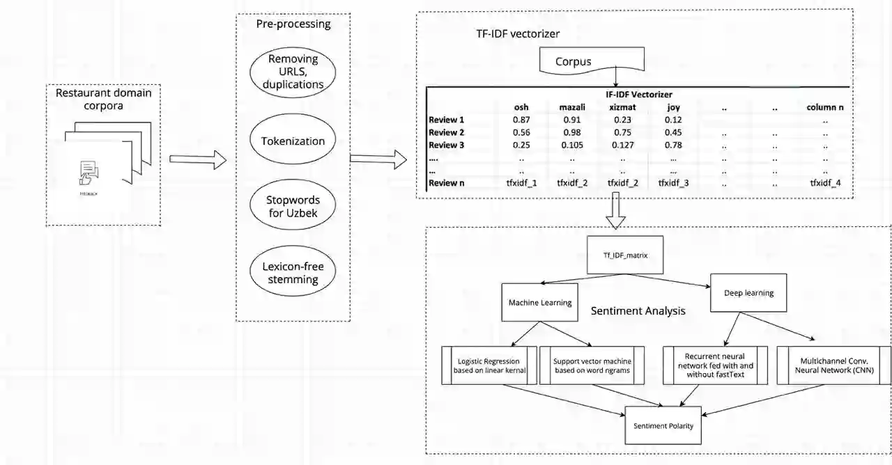 翻译:从大量用户产生的反馈(如餐馆审查)中提取用于情绪分析和分类问题的有用信息,这是自然语言处理的一项关键任务,这不仅是客户满意,可以提供个性化服务,而且能够影响公司进一步发展。在本文件中,我们介绍了收集餐馆审查数据的工作,作为乌兹别克语的情绪分析数据集,乌兹别克语是突厥语大家庭的一员,受到资源贫乏的严重影响,我们从大量用户产生的反馈(如餐馆审查)中提取了用于情绪分析和分类问题的有用信息,并对使用不同技术,从后勤回归模型到支持载体机器,甚至深层学习模型,例如经常性神经网络和进化神经网络等,通过评估而得出的新数据集进行了一些进一步分析。该文件详细介绍了如何收集数据、如何预先处理数据以提高质量优化,以及评估过程的实验性设置。总体评价结果表明,通过采取预处理步骤,例如为含蓄性语言而推出,系统将产生更好的结果,最终在最佳运行模型中取得91%的准确性结果。