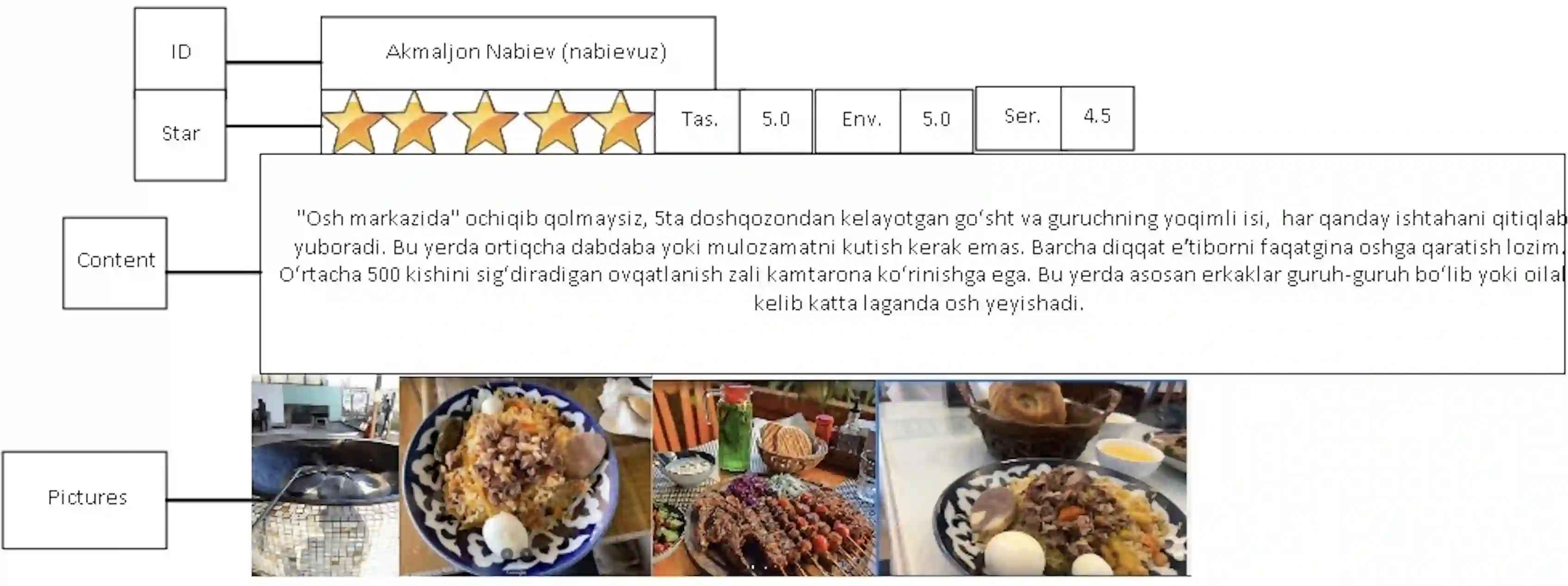 Extracting useful information for sentiment analysis and classification problems from a big amount of user-generated feedback, such as restaurant reviews, is a crucial task of natural language processing, which is not only for customer satisfaction where it can give personalized services, but can also influence the further development of a company. In this paper, we present a work done on collecting restaurant reviews data as a sentiment analysis dataset for the Uzbek language, a member of the Turkic family which is heavily affected by the low-resource constraint, and provide some further analysis of the novel dataset by evaluation using different techniques, from logistic regression based models, to support vector machines, and even deep learning models, such as recurrent neural networks, as well as convolutional neural networks. The paper includes detailed information on how the data was collected, how it was pre-processed for better quality optimization, as well as experimental setups for the evaluation process. The overall evaluation results indicate that by performing pre-processing steps, such as stemming for agglutinative languages, the system yields better results, eventually achieving 91% accuracy result in the best performing model