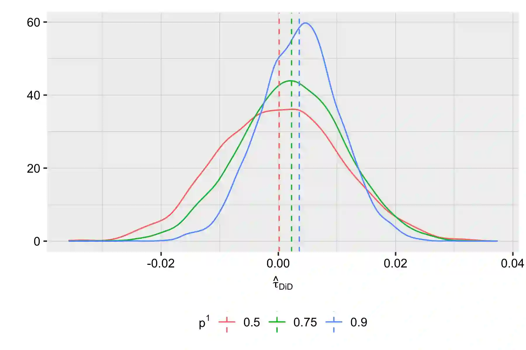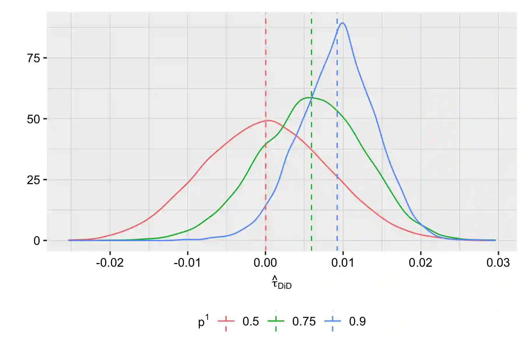 翻译:本文开发了一种基于设计、适合分析准实验环境的不确定性理论,例如差异差异(DID)。 我们框架的一个关键特征是,每个单位都有研究者所不知道的、可能与潜在结果相关的特殊治疗概率。 我们为共同估计者(包括DID)的偏差得出公式,并提供了一种条件,在这种条件下,它们对于不可弥补的因果关系(例如,与ATE或ATT的类比)是不带偏见的。 我们还进一步表明,当有限的人口数量庞大时,常规标准错误是有效的,但通常对估计者在随机分布上的差异进行保守的估计。我们框架的一个有趣的特征是,当处理可能性不同单位时,常规标准错误会变得更加保守。这种保守性有助于(部分地)在估计者有偏差时减轻信任期的底线间隔。因此,DID估计者的信任度可以纠正平均治疗效果的覆盖面,而对于实际处理的统计标准差则通常保守性的估计。我们框架的一个有趣的特征是,如果平行的市场趋势确实能维持我们这些平行的汇率,那么,我们就可以对这些平行的汇率进行共同的汇率分析。