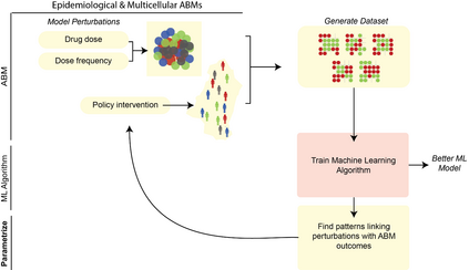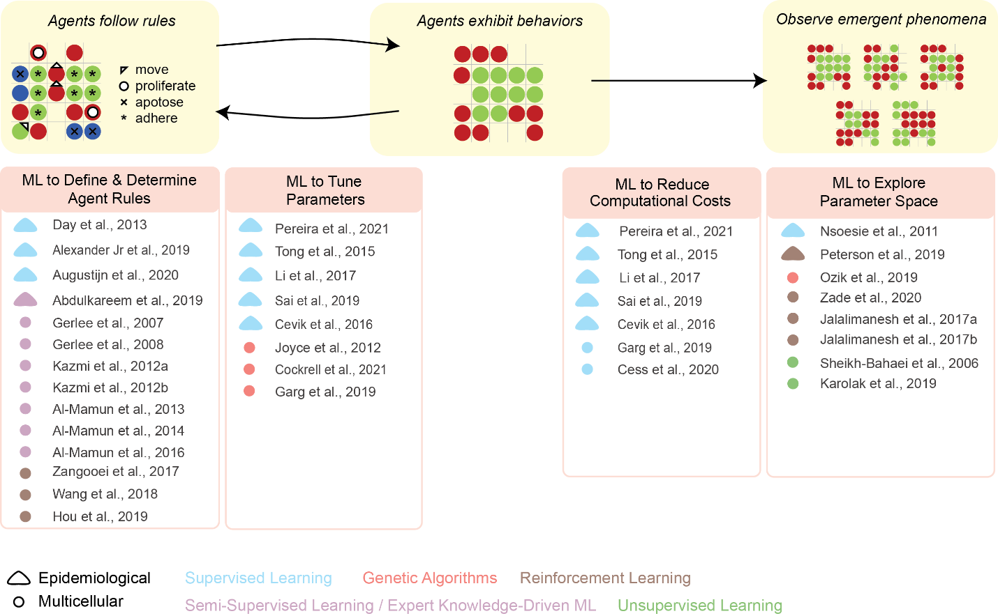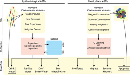 翻译:以代理为基础的模型( ABM) 是用来通过组成实体之间的相互作用模拟复杂系统的完善范例。 机器学习( ML) 指的是统计算法从自身数据中“ 精液” 取自其自身的数据, 而不强加系统行为的先验理论。 生物系统 -- -- 从分子、 细胞到整个生物体 -- -- 由大量实体组成, 由复杂的互动网络管理, 由跨越许多空间尺度的复杂互动网络管理, 显示实体之间的非直线性、 随机性和错综复杂的组合。 这种系统的宏观特性和集体动态很难通过连续建模和平均格式来捕捉取。 ABML采取“ 自下而上而上”的方法, 避免这些困难, 使一个人能够轻松地提议和测试一套定义明确的“规则 ”, 从分子到整个系统中的单个实体( 代理人), 评估一个系统, 传播其状态, 通过离散的时间步, 有效地模拟这个系统, 允许观测结果, 和系统特性分析。 由于管理反弹道导弹的规则可能从抽象系统到实验性系统,, 从实验性地, 变现一个系统,, 货币变货币变货币规则 。