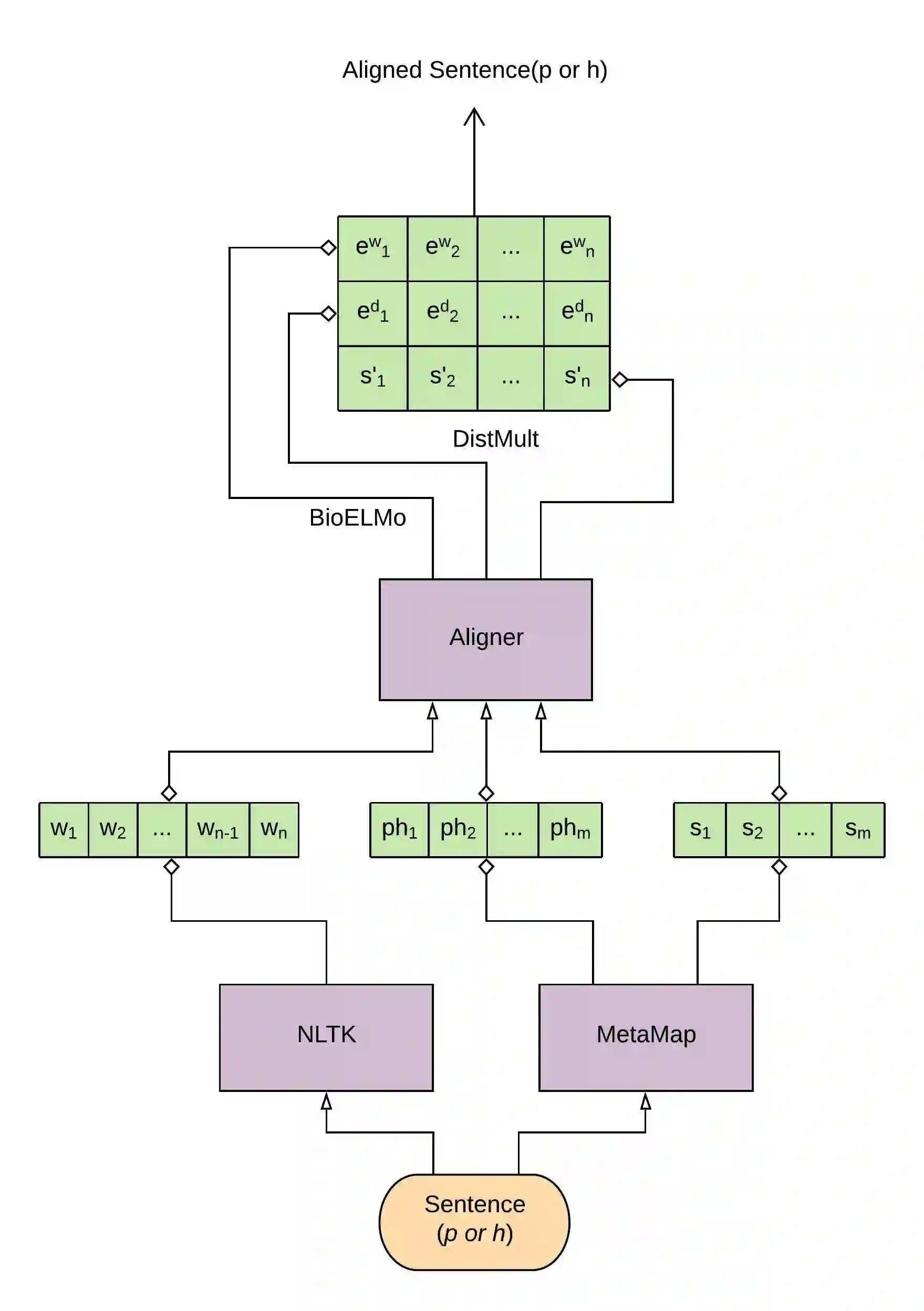 翻译:最近,从BioELMO等语言模型获得的生物医学嵌入版本展示了医学领域文字推断任务的最新结果。在本文中,我们探讨了如何将以知识图(UMLS)形式提供的结构化域知识纳入医学国家实验室任务。具体地说,我们试验了将从知识图获得的嵌入与国家实验室任务的最新方法(ESIMM模式)相结合。我们还试验了将特定域感知信息用于这一任务。在MedNLI数据集上进行的实验清楚地表明,这一战略改善了医学国家实验室任务的基线生物ELMO结构。