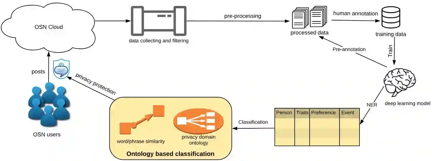 翻译:每天在网上社交网络上公布大量信息,最终用户也可能无意识地披露个人隐私相关信息。识别隐私相关数据并保护在线社交网络用户免遭隐私泄漏非常重要。基于这一动机,本研究旨在提出和制定一种混合隐私分类方法,以检测和分类来自OSNs的隐私信息。拟议混合方法采用深层学习模式和基于本体的隐私信息提取模式。进行了广泛的实验,以验证拟议的混合方法,实验结果显示,该方法在协助在线社交网络用户防止隐私泄漏方面具有优势。