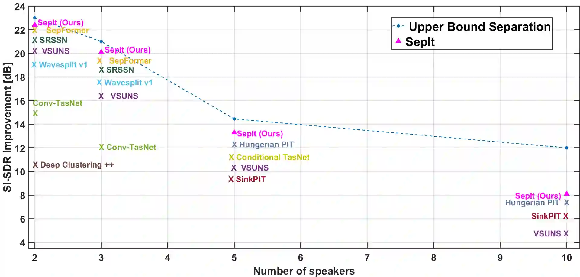 翻译:我们提出了一个单一频道语音分离任务的上限,该任务基于对短篇发言性质的假设。我们利用这一约束,能够表明,虽然最近的方法对少数发言者来说已经取得重大进展,但对于5位和10位发言者来说仍有改进的余地。然后我们推出一个深神经网络,SepIT, 迭接地改进了不同发言者的估计。在试验时间,SpeIT根据我们分析得出的相互信息标准,每个试样的迭代次数不同。在一系列广泛的实验中,SepIT超越了2、3、5和10位发言者的最新神经网络。