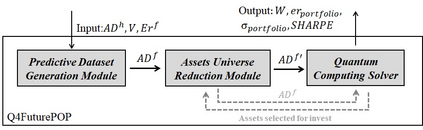 One of the problems in quantitative finance that has received the most attention is the portfolio optimization problem. Regarding its solving, this problem has been approached using different techniques, with those related to quantum computing being especially prolific in recent years. In this study, we present a system called Quantum Computing-based System for Portfolio Optimization with Future Asset Values and Automatic Universe Reduction (Q4FuturePOP), which deals with the Portfolio Optimization Problem considering the following innovations: i) the developed tool is modeled for working with future prediction of assets, instead of historical values; and ii) Q4FuturePOP includes an automatic universe reduction module, which is conceived to intelligently reduce the complexity of the problem. We also introduce a brief discussion about the preliminary performance of the different modules that compose the prototypical version of Q4FuturePOP.