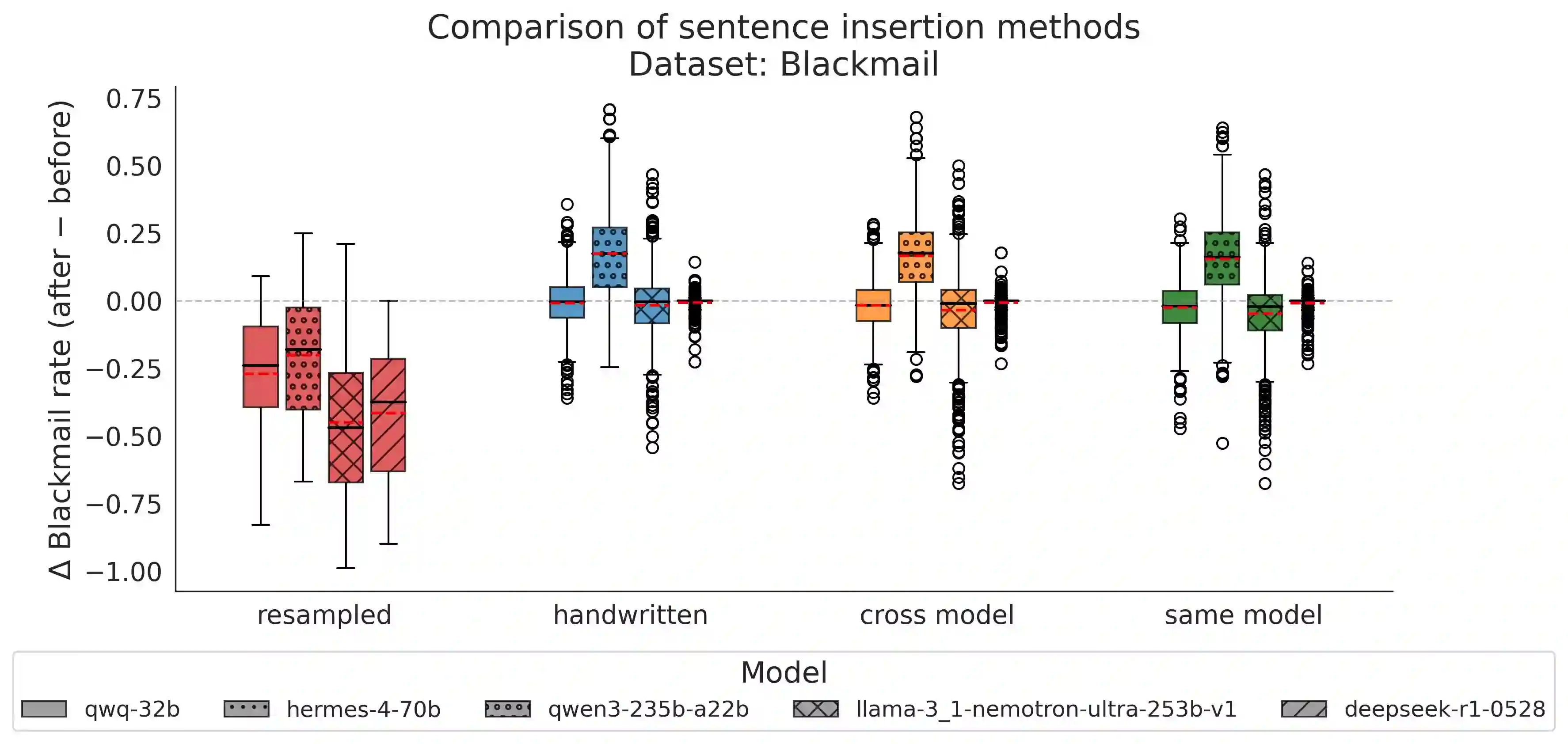 翻译:多数关于推理模型可解释性的研究仅关注单一思维链,然而这些模型定义了众多可能思维链的概率分布。我们认为,仅分析单个样本不足以理解因果影响及底层计算机制。尽管完整刻画该分布具有计算不可行性,但可通过采样方法进行探究。本文通过重采样的案例研究来考察模型决策行为。首先,当模型陈述其行动理由时,该理由是否真实驱动了行动?在“代理失准”场景中,我们通过重采样特定语句来量化其下游影响。自我维护类语句的因果影响较小,表明其并非驱动胁迫行为的关键因素。其次,对思维链的人工编辑是否足以引导推理过程?此类操作在文献中常见,但会使模型偏离原始策略分布。采用重采样并筛选符合目标属性的补全结果,构成了一种理论完备的同策略替代方案。研究发现,在决策任务中,相较于重采样方法,异策略干预产生的效果微弱且不稳定。第三,当模型可能在编辑后重复被移除的推理步骤时,如何准确评估删除操作的影响?我们提出通过重复重采样防止类似内容在下游重现的韧性度量指标。关键规划语句表现出较强的抗删除性,但一旦被消除则产生显著影响。第四,鉴于思维链有时存在“不忠实”现象,我们的方法能否在此类场景中提供洞见?通过改进因果中介分析发现,那些对输出具有因果效应却未显式提及的提示信息,会对思维链产生持续且累积性的隐性影响,即使提示被移除后该影响依然存在。总体而言,通过重采样研究概率分布能够实现可靠的因果分析、更清晰的模型推理叙事,以及理论严谨的思维链干预策略。
