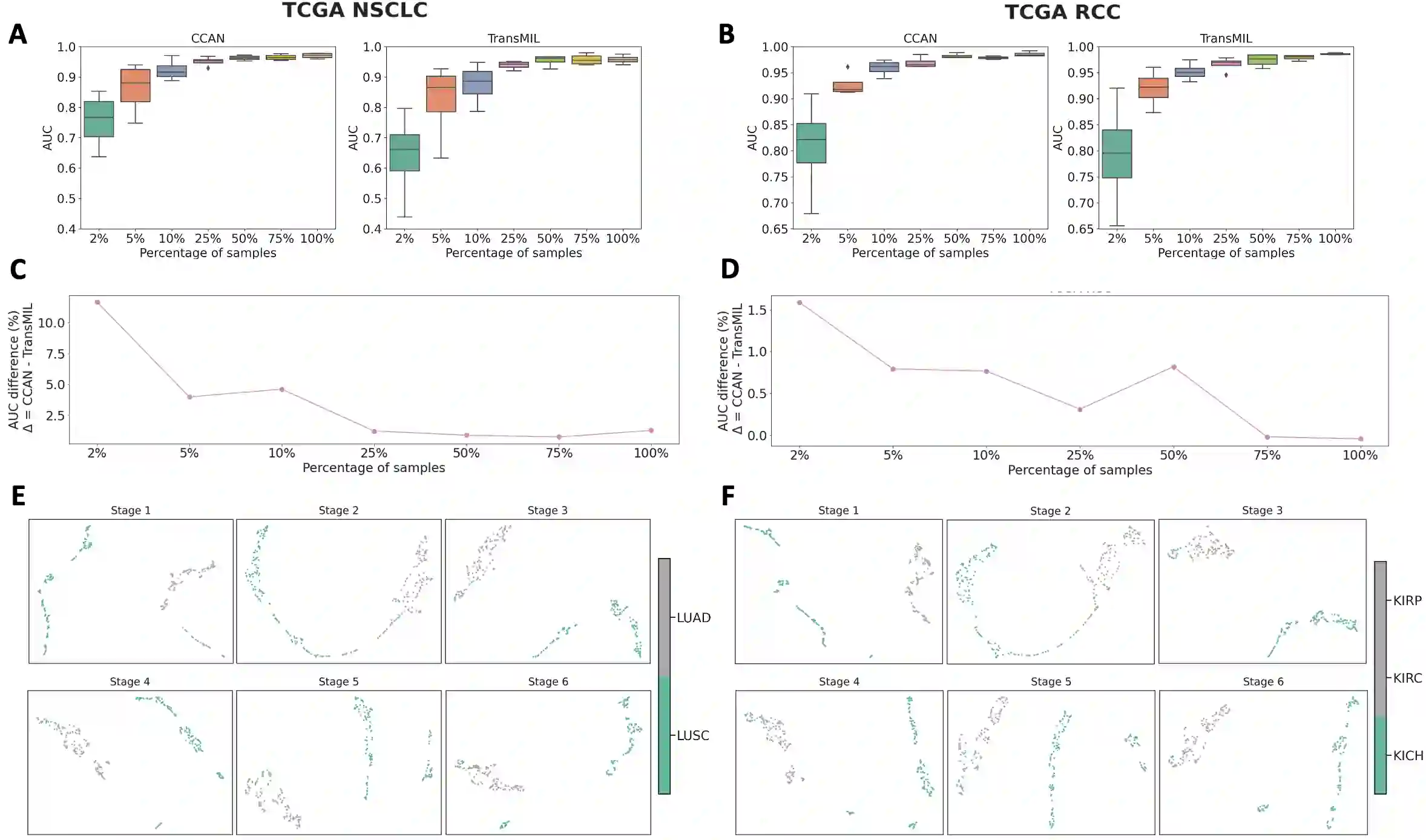 Whole-Slide Imaging allows for the capturing and digitization of high-resolution images of histological specimen. An automated analysis of such images using deep learning models is therefore of high demand. The transformer architecture has been proposed as a possible candidate for effectively leveraging the high-resolution information. Here, the whole-slide image is partitioned into smaller image patches and feature tokens are extracted from these image patches. However, while the conventional transformer allows for a simultaneous processing of a large set of input tokens, the computational demand scales quadratically with the number of input tokens and thus quadratically with the number of image patches. To address this problem we propose a novel cascaded cross-attention network (CCAN) based on the cross-attention mechanism that scales linearly with the number of extracted patches. Our experiments demonstrate that this architecture is at least on-par with and even outperforms other attention-based state-of-the-art methods on two public datasets: On the use-case of lung cancer (TCGA NSCLC) our model reaches a mean area under the receiver operating characteristic (AUC) of 0.970 $\pm$ 0.008 and on renal cancer (TCGA RCC) reaches a mean AUC of 0.985 $\pm$ 0.004. Furthermore, we show that our proposed model is efficient in low-data regimes, making it a promising approach for analyzing whole-slide images in resource-limited settings. To foster research in this direction, we make our code publicly available on GitHub: XXX.