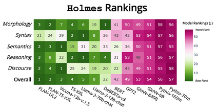 We introduce Holmes, a benchmark to assess the linguistic competence of language models (LMs) - their ability to grasp linguistic phenomena. Unlike prior prompting-based evaluations, Holmes assesses the linguistic competence of LMs via their internal representations using classifier-based probing. In doing so, we disentangle specific phenomena (e.g., part-of-speech of words) from other cognitive abilities, like following textual instructions, and meet recent calls to assess LMs' linguistic competence in isolation. Composing Holmes, we review over 250 probing studies and feature more than 200 datasets to assess syntax, morphology, semantics, reasoning, and discourse phenomena. Analyzing over 50 LMs reveals that, aligned with known trends, their linguistic competence correlates with model size. However, surprisingly, model architecture and instruction tuning also significantly influence performance, particularly in morphology and syntax. Finally, we propose FlashHolmes, a streamlined version of Holmes designed to lower the high computation load while maintaining high-ranking precision.