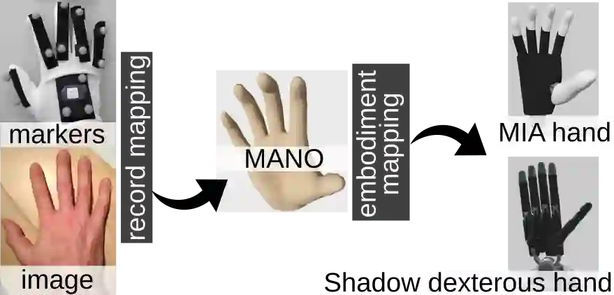 翻译:用机器人手操纵物体是一项复杂的任务。 不仅需要协调手手指, 还需要协调机器人尾部效应的构成。 使用人类运动演示是一种直觉和数据高效的方式来指导机器人的行为。 我们提出了一个模块框架, 包含一个自动化映射, 将记录到的人类手动转移到机器人系统。 在这项工作中, 我们使用运动捕捉来记录人类运动。 我们评估了我们对于八项具有挑战性的任务的方法, 其中机器人手需要捕捉和操纵变形的或小的和脆弱的物体。 我们在模拟和真实的机器人上测试一组轨迹, 并且总体成功率是一致的。