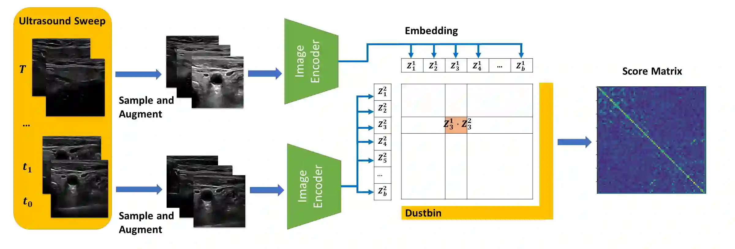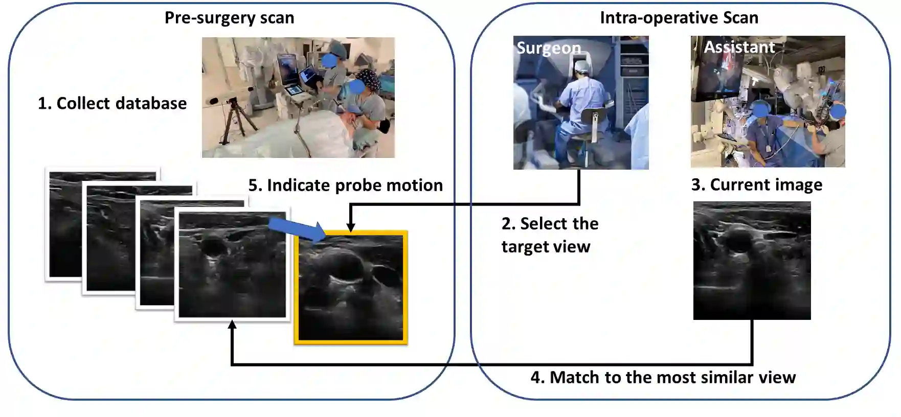 Purpose: Intraoperative ultrasound (US) can enhance real-time visualization in transoral robotic surgery. The surgeon creates a mental map with a pre-operative scan. Then, a surgical assistant performs freehand US scanning during the surgery while the surgeon operates at the remote surgical console. Communicating the target scanning plane in the surgeon's mental map is difficult. Automatic image retrieval can help match intraoperative images to preoperative scans, guiding the assistant to adjust the US probe toward the target plane. Methods: We propose a self-supervised contrastive learning approach to match intraoperative US views to a preoperative image database. We introduce a novel contrastive learning strategy that leverages intra-sweep similarity and US probe location to improve feature encoding. Additionally, our model incorporates a flexible threshold to reject unsatisfactory matches. Results: Our method achieves 92.30% retrieval accuracy on simulated data and outperforms state-of-the-art temporal-based contrastive learning approaches. Our ablation study demonstrates that using probe location in the optimization goal improves image representation, suggesting that semantic information can be extracted from probe location. We also present our approach on real patient data to show the feasibility of the proposed US probe localization system despite tissue deformation from tongue retraction. Conclusion: Our contrastive learning method, which utilizes intra-sweep similarity and US probe location, enhances US image representation learning. We also demonstrate the feasibility of using our image retrieval method to provide neck US localization on real patient US after tongue retraction.