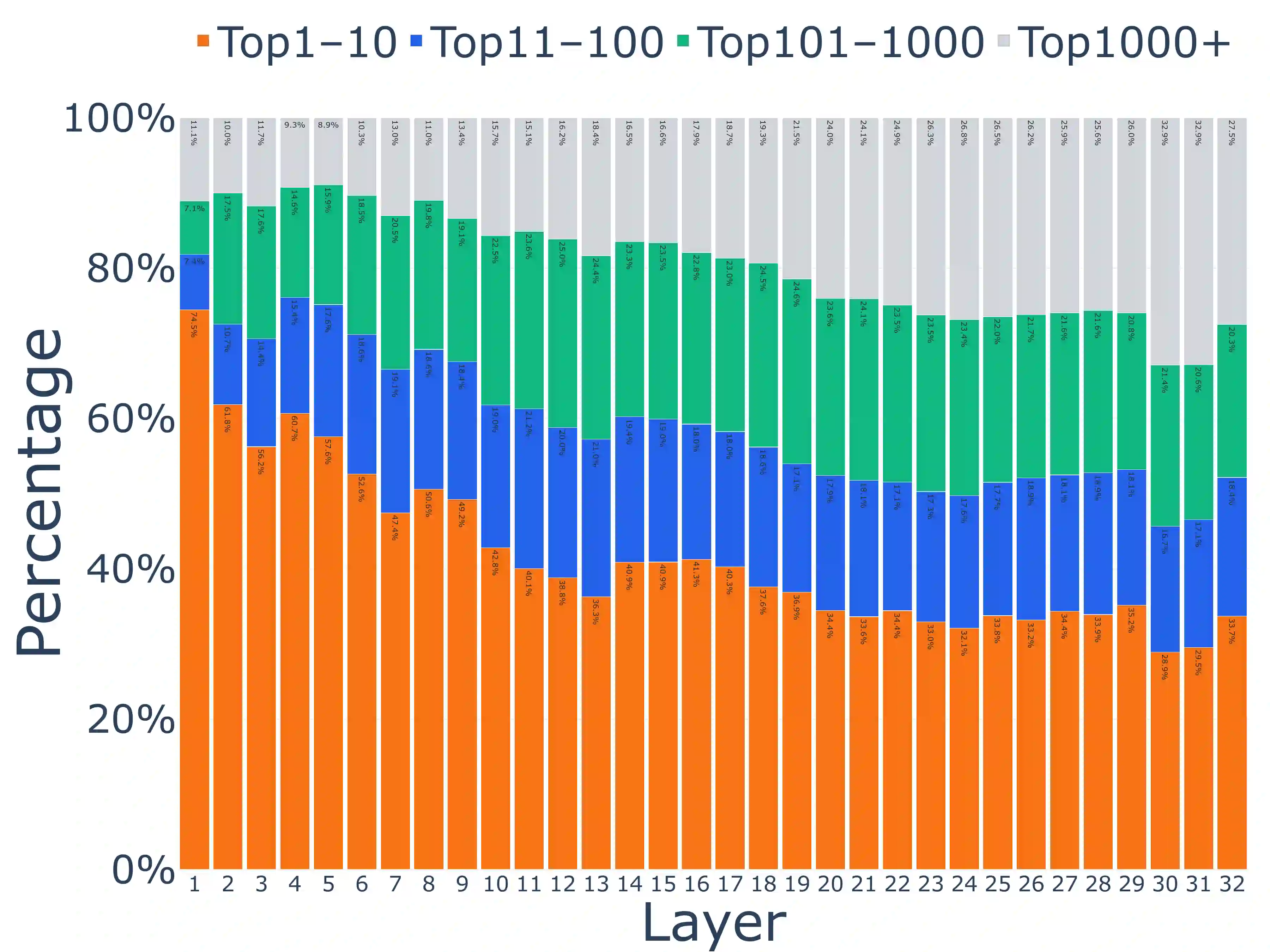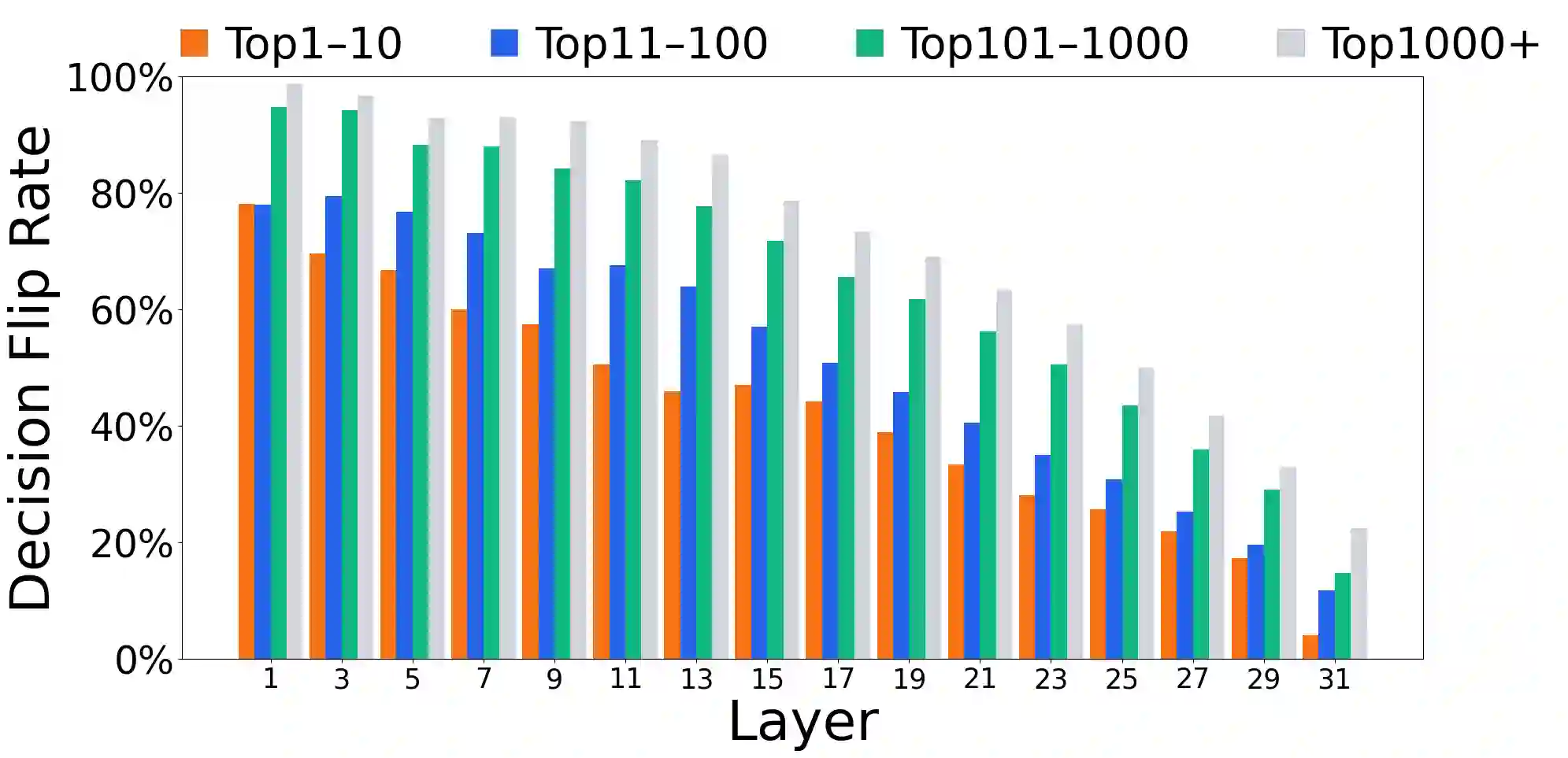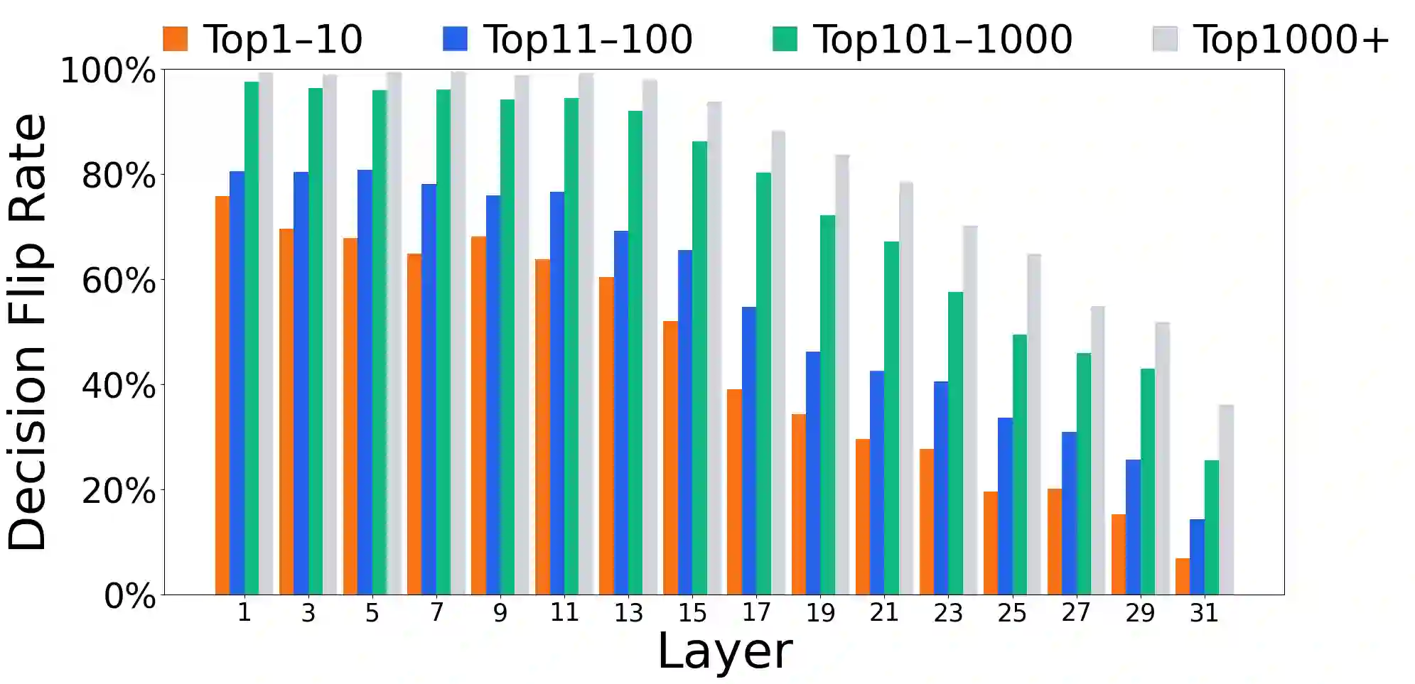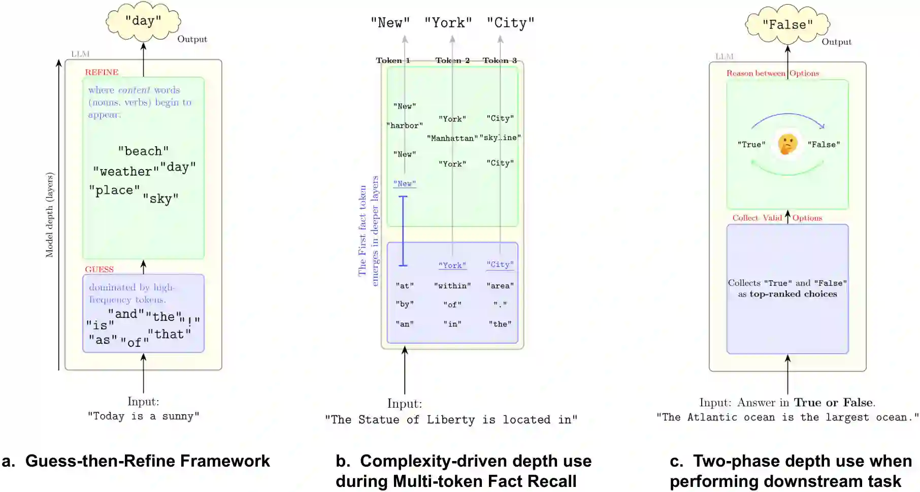 翻译:越来越多的证据表明,大型语言模型并非均匀地利用其深度,然而我们仍缺乏对其逐层预测动态的细粒度理解。本文追踪了多个开源权重模型在推理过程中的中间表示,揭示了其深度使用具有结构化和细致化的特征。具体而言,我们提出了一个"猜测-优化"框架,用以解释LLM如何内部组织其计算以进行预测。我们首先证明,LLM早期层中的高排名预测主要由高频词元构成,这些词元由于缺乏适当的上下文信息而在模型早期作为统计猜测被提出。随着上下文信息在模型更深层中逐渐发展,这些初始猜测会被优化为符合上下文的词元。即使是早期层的高频词元预测,其优化比例也超过70%,这表明正确的词元预测并非"一蹴而就"。随后,我们超越基于频率的预测分析,通过三个案例研究探讨了层深度的动态使用情况。(i) 词性分析表明,功能词平均而言最早被正确预测。(ii) 事实回忆任务分析显示,在多词元答案中,第一个词元需要比其余部分更多的计算深度。(iii) 多项选择任务分析表明,模型在前半部分层中识别出回答的格式,但仅在接近末尾时才最终确定其回答。综合来看,我们的结果为LLM中的深度使用提供了详细视图,揭示了支撑成功预测的逐层计算过程,并为未来工作提升基于Transformer模型的计算效率提供了见解。