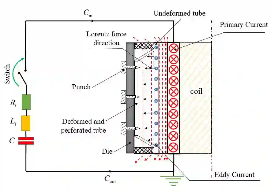 Electromagnetic forming and perforations (EMFP) are complex and innovative high strain rate processes that involve electromagnetic-mechanical interactions for simultaneous metal forming and perforations. Instead of spending costly resources on repetitive experimental work, a properly designed numerical model can be effectively used for detailed analysis and characterization of the complex process. A coupled finite element (FE) model is considered for analyzing the multi-physics of the EMFP because of its robustness and improved accuracy. In this work, a detailed understanding of the process has been achieved by numerically simulating forming and perforations of Al6061-T6 tube for 12 holes and 36 holes with two different punches, i.e., pointed and concave punches using Ls-Dyna software. In order to shed light on EMFP physics, a comparison between experimental data and the formulated numerical simulation has been carried out to compare the average hole diameter and the number of perforated holes, for different types of punches and a range of discharge energies. The simulated results show acceptable agreement with experimental studies, with maximum deviations being less than or equal to 6%, which clearly illustrates the efficacy and capability of the developed coupled Multi-physics FE model.