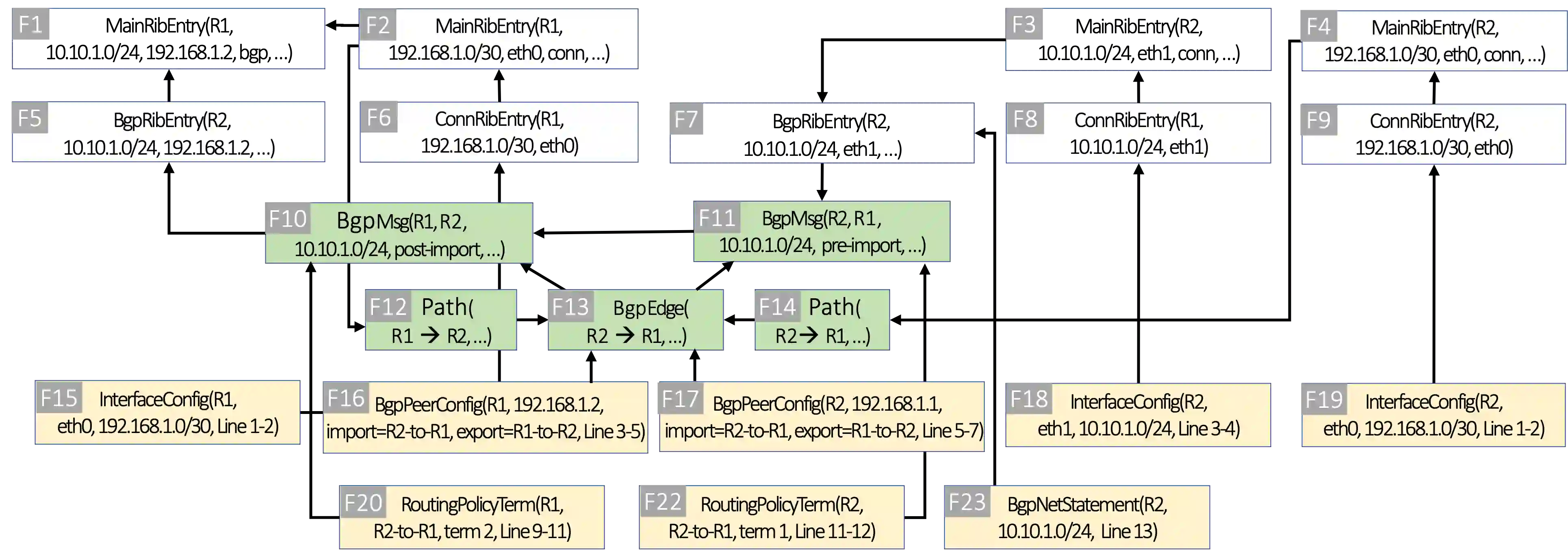 翻译:我们开发了NetCov, 这是第一个通过一系列网络测试来显示哪些网络配置线正在测试的工具。 它帮助网络工程师改进测试套件, 从而提高网络可靠性。 开发过程中的一个关键挑战是许多网络测试数据平面而不是直接测试配置( 控制平面 ) 。 我们必须能够有效地推算哪些配置元素有助于测试数据平面元素, 即使这些元素是非本地( 远程设备) 或非确定性的。 NetCov 使用基于信息流图的模型, 精确地捕捉各种形式的贡献, 并使用可缩放的方法推算贡献。 我们使用它, 我们显示现有的互联网2 测试套件( 美国的全国性主干线网络) 仅覆盖配置线的26% 。 NetCov 的反馈使得很容易定义新的测试来改进覆盖范围。 对于互联网2, 仅增加三个这样的测试就覆盖了另外的17% 。