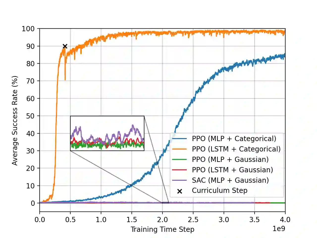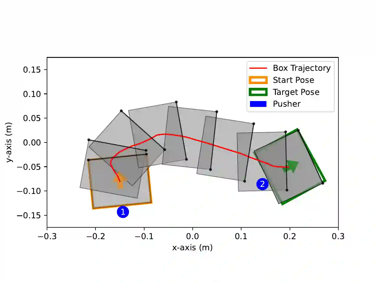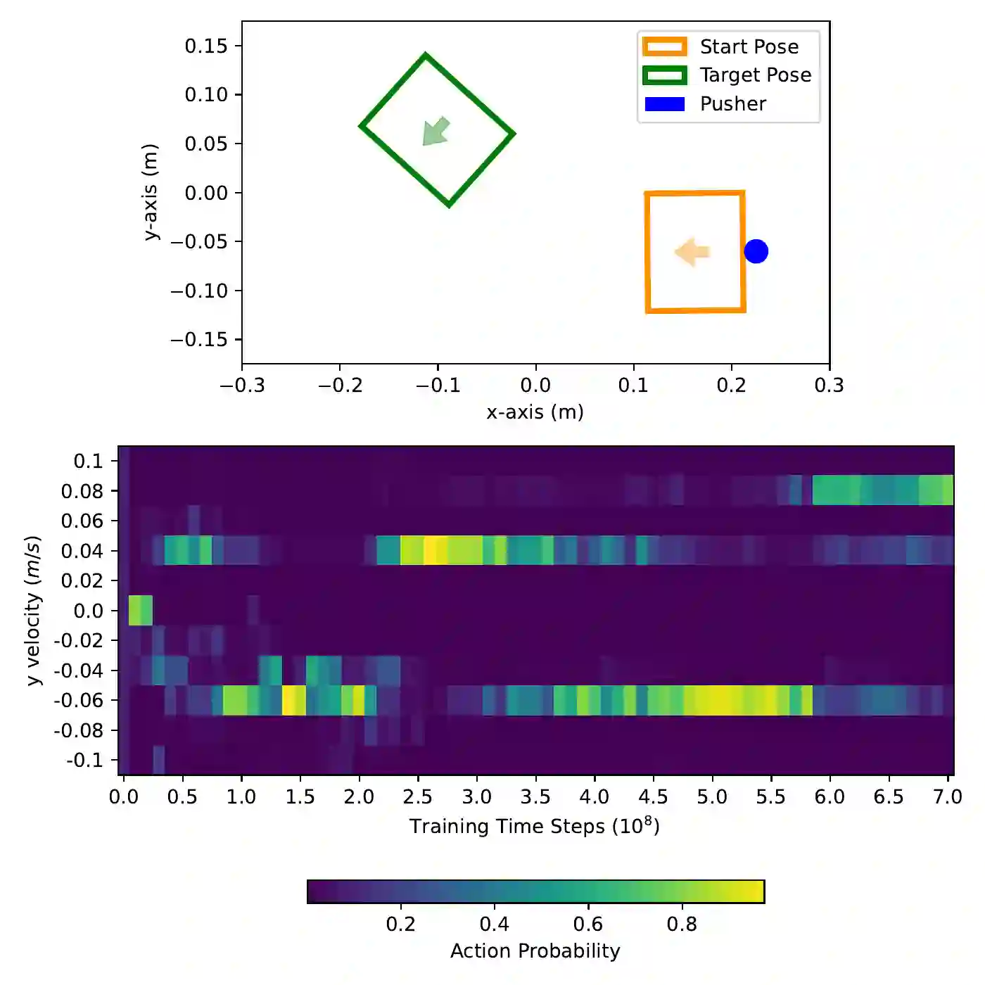 Developing robot controllers capable of achieving dexterous nonprehensile manipulation, such as pushing an object on a table, is challenging. The underactuated and hybrid-dynamics nature of the problem, further complicated by the uncertainty resulting from the frictional interactions, requires sophisticated control behaviors. Reinforcement Learning (RL) is a powerful framework for developing such robot controllers. However, previous RL literature addressing the nonprehensile pushing task achieves low accuracy, non-smooth trajectories, and only simple motions, i.e. without rotation of the manipulated object. We conjecture that previously used unimodal exploration strategies fail to capture the inherent hybrid-dynamics of the task, arising from the different possible contact interaction modes between the robot and the object, such as sticking, sliding, and separation. In this work, we propose a multimodal exploration approach through categorical distributions, which enables us to train planar pushing RL policies for arbitrary starting and target object poses, i.e. positions and orientations, and with improved accuracy. We show that the learned policies are robust to external disturbances and observation noise, and scale to tasks with multiple pushers. Furthermore, we validate the transferability of the learned policies, trained entirely in simulation, to a physical robot hardware using the KUKA iiwa robot arm. See our supplemental video: https://youtu.be/vTdva1mgrk4.