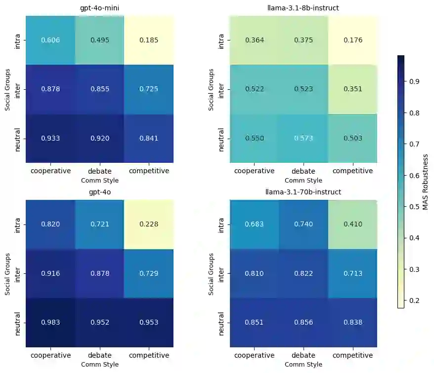 Bias in large language models (LLMs) remains a persistent challenge, manifesting in stereotyping and unfair treatment across social groups. While prior research has primarily focused on individual models, the rise of multi-agent systems (MAS), where multiple LLMs collaborate and communicate, introduces new and largely unexplored dynamics in bias emergence and propagation. In this work, we present a comprehensive study of stereotypical bias in MAS, examining how internal specialization, underlying LLMs and inter-agent communication protocols influence bias robustness, propagation, and amplification. We simulate social contexts where agents represent different social groups and evaluate system behavior under various interaction and adversarial scenarios. Experiments on three bias benchmarks reveal that MAS are generally less robust than single-agent systems, with bias often emerging early through in-group favoritism. However, cooperative and debate-based communication can mitigate bias amplification, while more robust underlying LLMs improve overall system stability. Our findings highlight critical factors shaping fairness and resilience in multi-agent LLM systems.